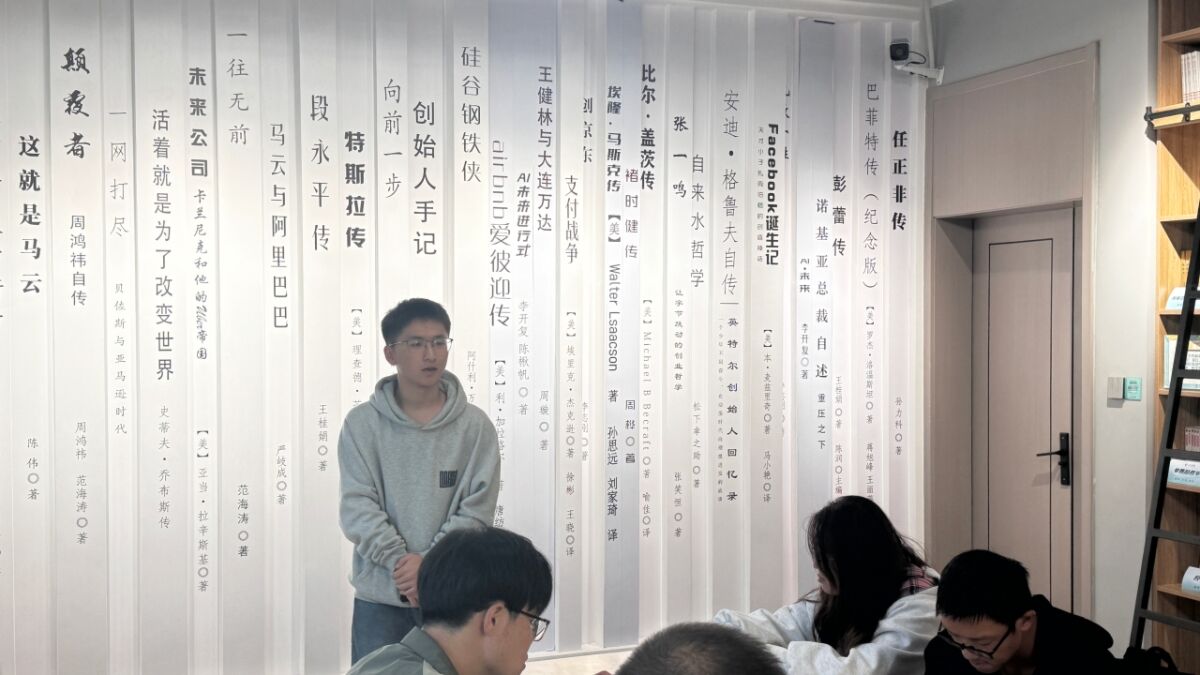 活动伊始,书屋内弥漫着浓厚的书香氛围,同学们热情高涨,纷纷提前到场签到,准备迎接这场心灵与智慧的盛宴。随着智能工程学院学生会学习部副部长李江琛的开场致辞,活动正式拉开帷幕。他简要介绍了《这就是马云》这本书的主要内容以及马云从一无所有到取得辉煌成就的传奇经历。马云,一个曾被视为普通甚至平凡的人,却凭借对梦想的执着追求和不懈奋斗,最终站上了世界商业的巅峰。他的故事,不仅是一段个人奋斗的传奇,更是一部激励人心的励志篇章。