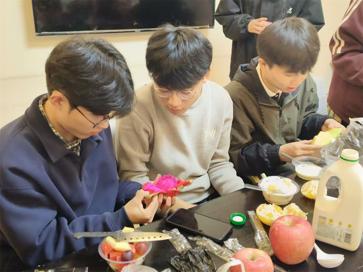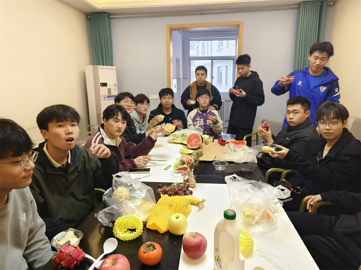 落叶纷飞藏不住,应季品味正当时。为提高同学们的劳动意识和劳动热情,锻炼同学们的动手能力,培养同学们的劳动精神,机制2304班于11月15日14:00在箕城书院会议室开展以“果意浓浓,快乐捞不停”为主题的完满团支部活动,将丰收的喜悦与美食相结合。活动中负责清洗水果的同学细心地清洗每一颗水果,确保表面干净无杂质;削皮切块的同学接过清洗好的水果,处理成大小适中、形状美观的块状或片状,既便于食用,又增添了视觉上的享受。还有同学则负责摆放水果。将切好的水果摆放在水果捞碗中,既注重色彩搭配,又追求整体美观。同学们感受到来自味蕾的温暖与甜蜜,使每一勺都成为难忘的温馨记忆。活动落幕,场地归零,但空气中仍然弥漫着甜蜜的气息。真正的美食不仅仅是味蕾的享受,更是心灵的触碰,每一口都是对生活美好的致敬。品尝之间,心灵得到滋养,让我们在平凡中发现不凡,感受生活的真谛。
