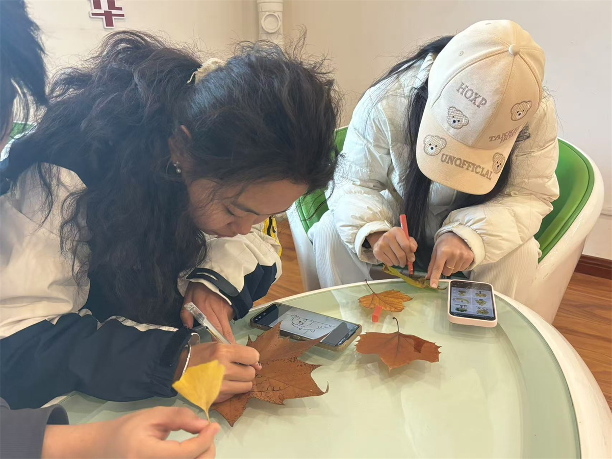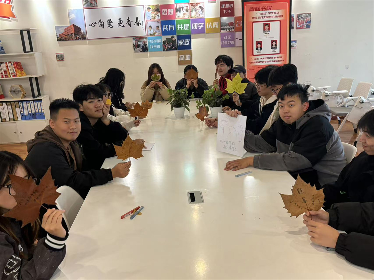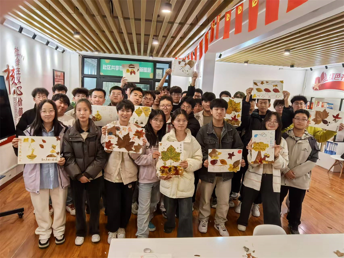 人工智能2302班的同学们在11月13日13:00于青藤会议室开展了以“秋叶舞墨韵,彩笔绘金风”为主题的完满团支部活动。旨在通过收集各种形状,颜色的落叶,用细腻的笔触在落叶上描绘出心中的秋景,让小小的落叶成为艺术的载体,展现出秋天独特的魅力。同学们通过自己心仪的彩笔颜色在落叶上勾勒出秋日的轮廓。活动中同学们用色彩表达,用颜料填充对秋天的感受,一片片失去光泽的落叶在同学们的手中又焕发出新的生机。本次活动旨在通过收集各种形状,颜色的落叶,用细腻的笔触在落叶上描绘出心中的秋景,让小小的落叶成为艺术的载体,展现出秋天独特的魅力,用画笔和落叶共同编织出属于自己的秋日梦幻。