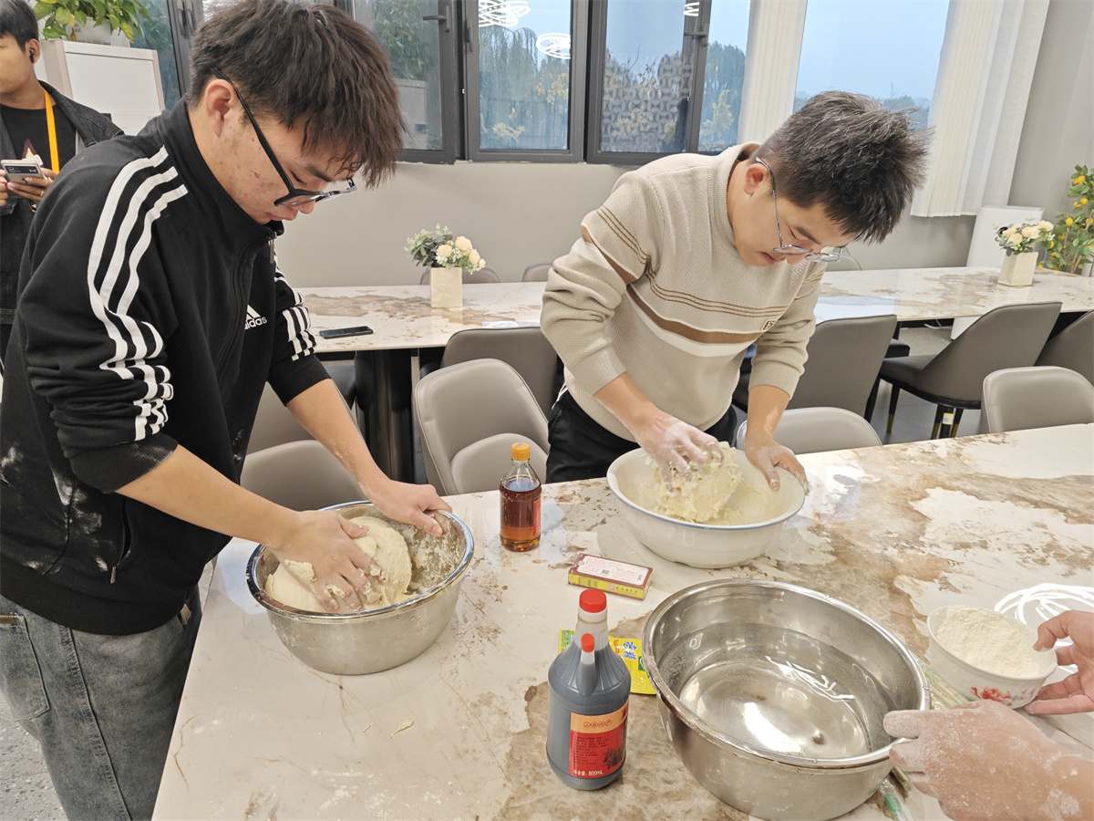 为了增强同学们的沟通交流,丰富课余生活,增进班级凝聚力与向心力。机器人2301班于11月15日16:00,在上河书院210家膳·共享厨房举办了一场主题为“饺子飘香,欢乐共享”温暖人心的完满团支部活动。班级成员分成若干小组,分别负责和面、调馅、包饺子等环节。和面组的同学们在面粉和水的比例上反复调试,力求做出最好的面团;调馅组则在调味上精益求精,将猪肉剁成肉泥,加入切碎的韭菜和调料;最后大家围坐在一起,品尝着自己亲手制作的美味佳肴。热腾腾的饺子不仅驱散了冬日的寒冷,更温暖了每一个人,深刻体会到集体活动的魅力。通过这次活动,同学们不仅收获了美味的饺子,更收获了友谊和快乐。饺子的温暖香气将一直伴随着大家,成为共同的美好回忆。