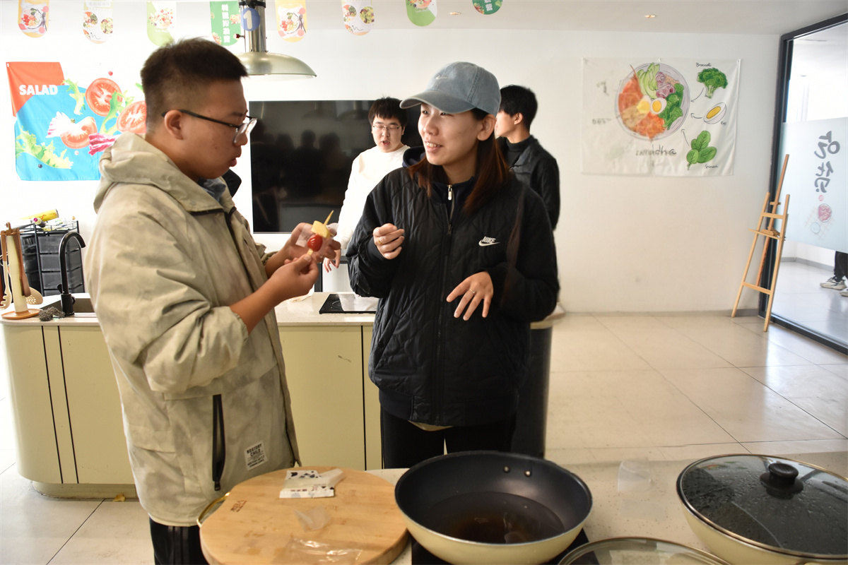 一转眼,秋天变成了故事,冬天变成了风景。冬是秋日落款后的续写诗篇。在这个寒冷的季节,为了促进同学们之间的交流合作,培养同学们的动手能力和创新精神。校团委志愿服务部主任赵乐老师与智能工程学院辅导员任文姣老师,联手智能工程学院机电2402班于11月21日10:30,以冰糖葫芦这一中国传统小吃为导体,在毣谷望野•共享厨房展开了一场温暖与甜蜜交织的趣味糖葫芦DIY完满团支部活动,让整个味蕾在这个冬天开出一朵绚烂的花。