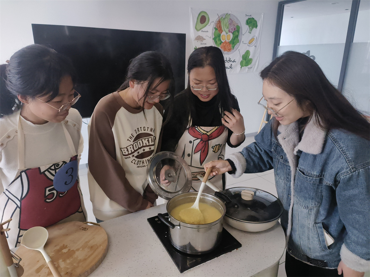 电子2402班于11月22日9:30在毣谷望野·共享厨房举办了一场以“故乡烟火:烹饪中的思念”为主题的完满团支部活动。此次完满团支部活动,开启了无数人尘封心底的故乡记忆宝盒,让思念找到了归巢。活动过程中,同学们处理了各种原材料,白菜、鸡肉、米饭在学生的巧手之下逐渐显露食物的香气,过程中,为增进学生之间了解,纷纷展示各地方言,分享起家乡的风土人情。最终,学生们一齐分享各自成品:白菜,入口的清甜与爽脆瞬间激活了儿时的记忆,而那一口口米饭,软糯香甜,每一粒都咀嚼出故乡的温暖与安心。这次完满团支部活动恰似一场情感与味蕾的双重体验,借烹饪之妙,搭起同学们与故乡的心灵虹桥。在烟火缭绕间,故乡的思念不再缥缈,而是化作舌尖上实实在在的慰藉与眷恋。