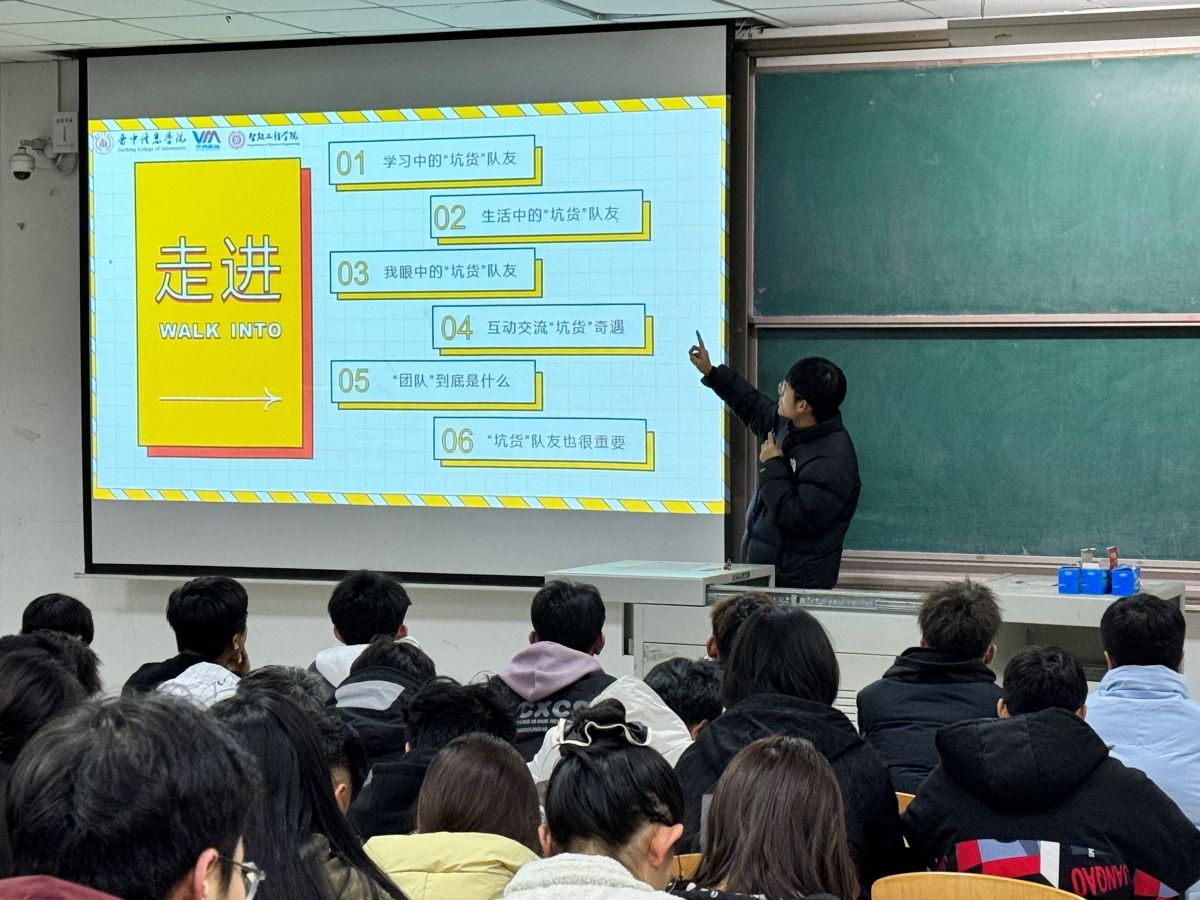 “一滴水只有放进大海里才永远不会干涸,一个人只有当他把自己和集体事业融合在一起的时候才最有力量。”这是雷锋对团结意识的个人理解,团结自古至今都伴随着我们的成长,亦是每个人应具有的意识。为培养学生团队凝聚力,让学生认识到团队协作的重要性,智能工程学院2023级辅导员闫星宇于12月4日18:00在2号教学楼101教室进行本次辅导员说完满活动。本次活动通过脱口秀的形式和学生进行探讨,结合学生打游戏、参加团体活动现实案例,以诙谐幽默的语言说出“坑货”队友的趣事从而进行相关教育引导。