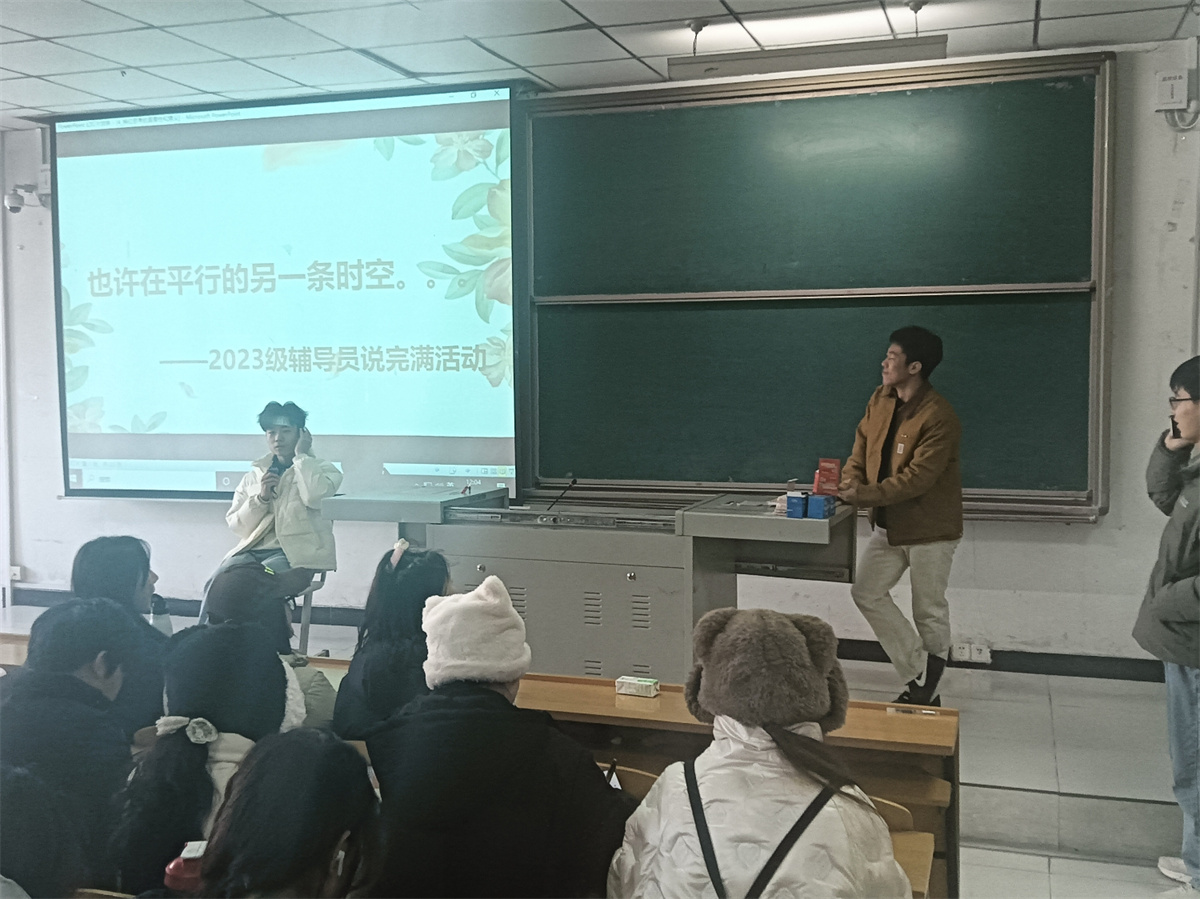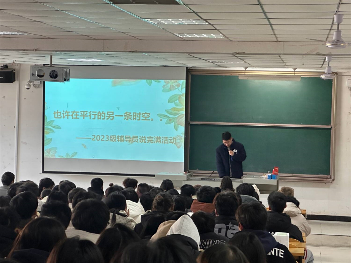 在校园的悠长岁月中,辅导员不仅是知识的引路人,更是心灵的灯塔,默默照亮着学子们的成长之路。然而,他们的辛勤耕耘与无私奉献,往往隐匿于日常的琐碎与不易之中,亟待被更多人以更深刻的方式理解与感知。为了促进师生间的换位思考,智能工程学院2023级辅导员杜岩涛老师于12月13日12:00在二号教学楼101教室精心策划了一场以“也许在平行的另一时空”为主题的辅导员说完满活动,旨在打破传统视角,引导学生不仅体会辅导员的困难,更能深入其内心世界,实现情感的共鸣与理解的深化。