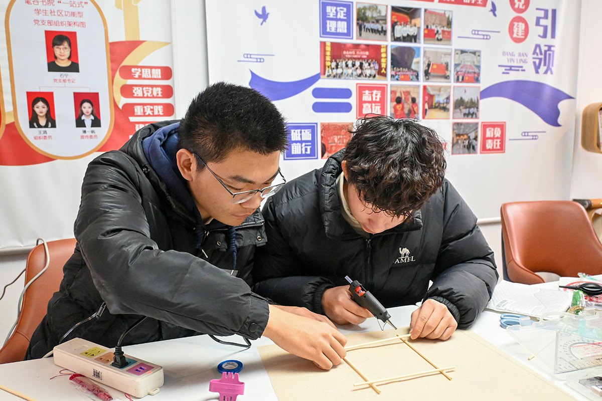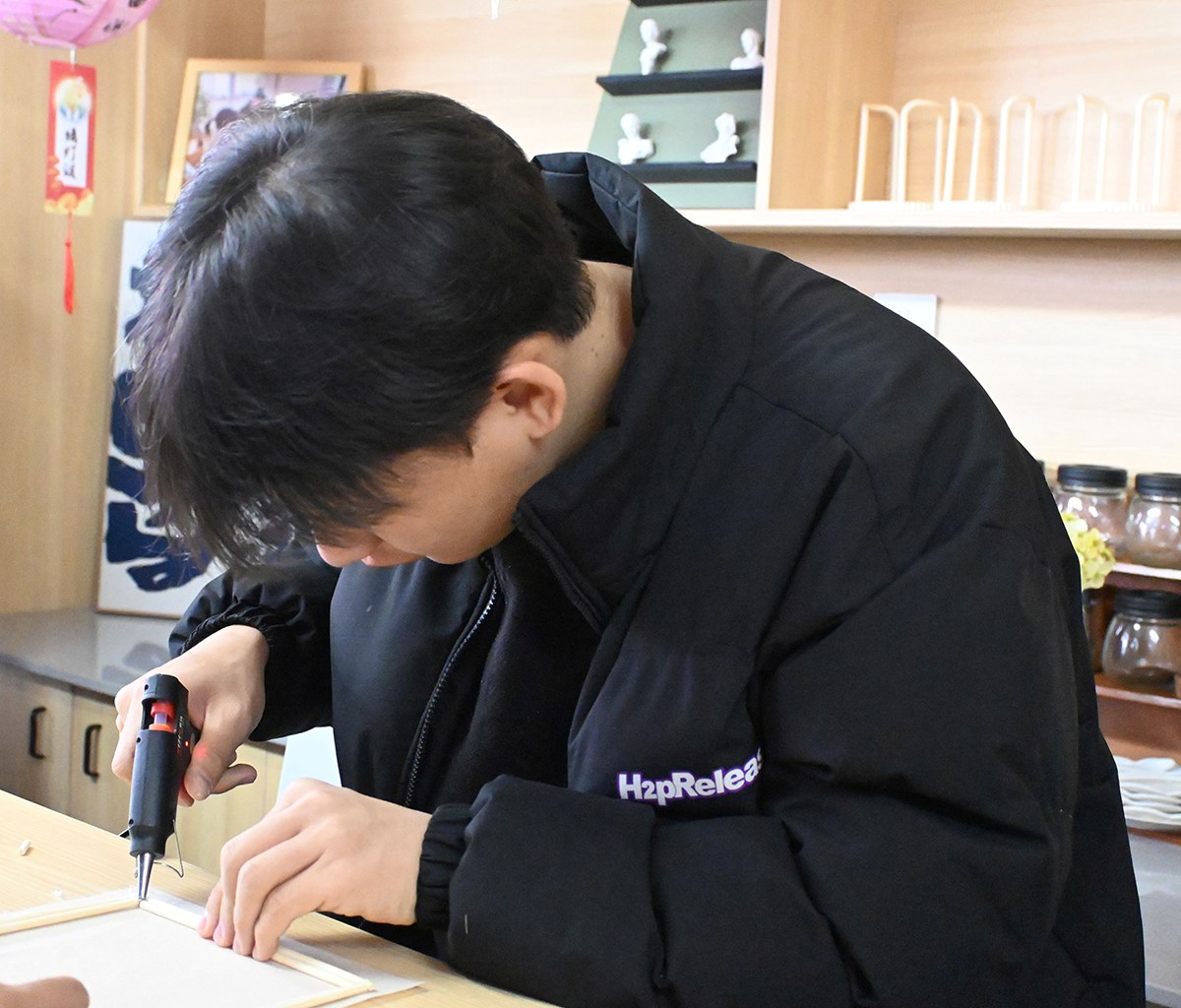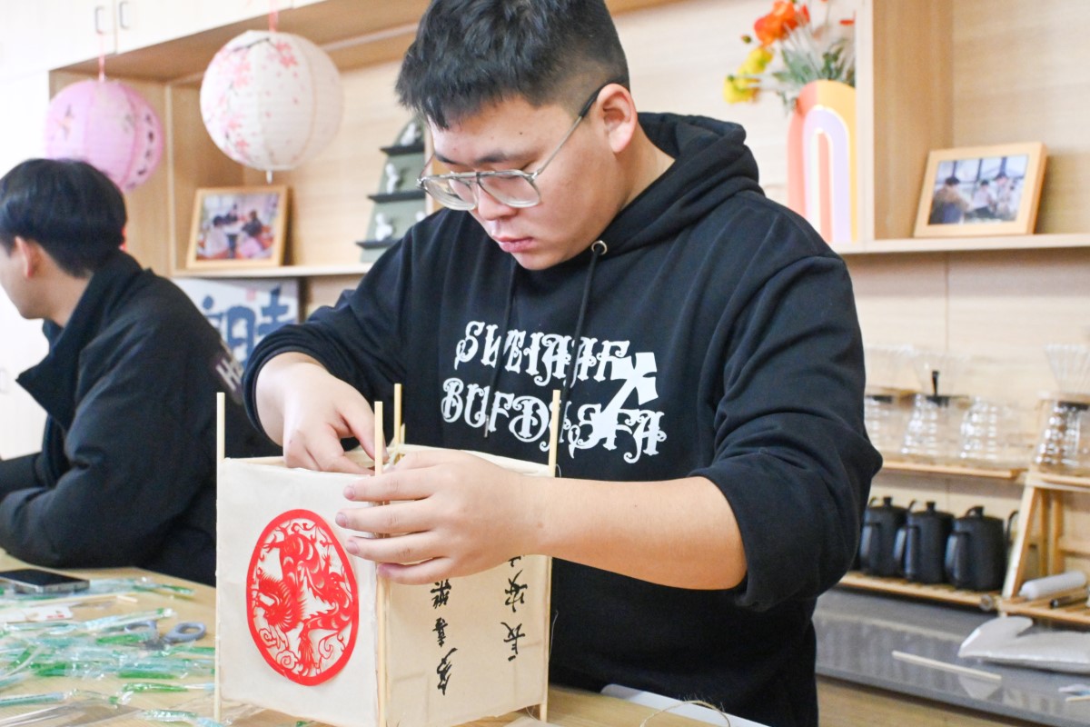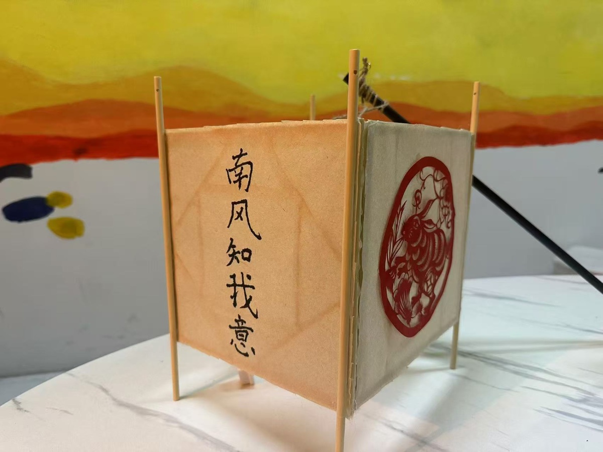 从裁剪宣纸、绘制笼面到构建骨架,每一步都充满了挑战,面对陌生的工艺,同学们在摸索中前行。在裁剪宣纸时,偶有失误发生,然而同学们并未气馁,而是如咬合紧密的齿轮组一般,迅速相互支援,共同剖析问题根源,探寻解决方法;绘制笼面的过程中,大家各抒己见,对作品进行反复微调与优化;搭建骨架时,遇到结构不稳等问题,同学们也凭借所学的专业知识和实践经验,紧密协作,仔细计算、耐心调整。在整个制作过程中,机制2303班的同学们将每一次失误都转化为积累经验、继续前行的宝贵契机,他们围坐在一起,对作品进行反复斟酌、精细打磨,每一次思维的碰撞都宛如细密而坚韧的丝线,层层缠绕交织,进一步紧实了班级凝聚力这条坚韧的纽带。
