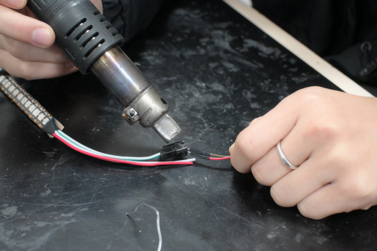 此次活动通过制作花灯使同学们近距离接触非遗文化,真切领略传统手工艺的独特魅力,刘佳瑞同学深入浅出地向大家讲解了花灯的历史渊源、文化内涵以及制作工艺的演变。在制作过程中,同学们借鉴机械制图的规范,在花灯上创作出对称且富有韵律的图案,还将花灯与机械零件的轮廓进行巧妙融合,为花灯增添了浓郁的专业色彩,实现了专业与非遗文化的深度融合。在灯带的焊接环节,他们充分应用PLC知识,精准地调整焊接参数,严格控制焊接温度与时间,在焊花的闪烁中,焊点逐渐成型,每一个焊点都既牢固可靠又光滑平整。灯带焊接完毕,同学们进一步发挥创新思维,构思电路连接方案、编写编程控制指令,使光线能够均匀而柔和地散射出来,让古老的花灯在新时代绽放出别样光彩,赋予非遗传承新的生命力与活力。