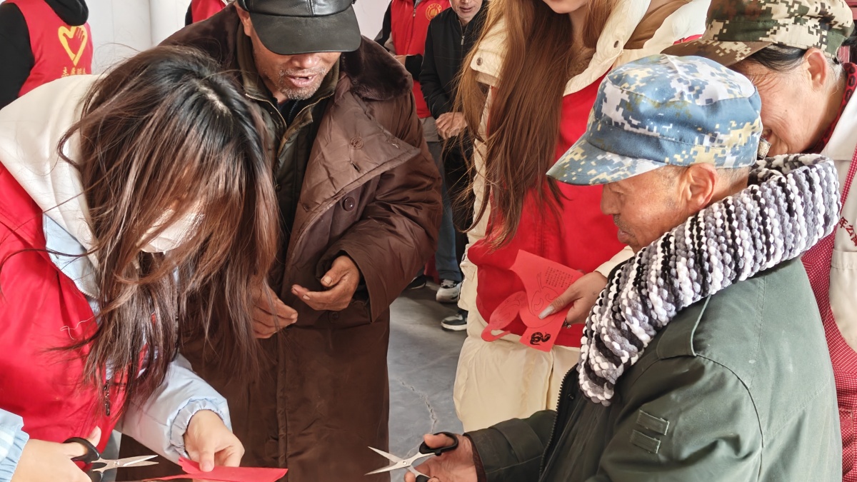 传递温暖与欢乐的同时,团支部全体成员与志愿服务队的同学们又与老人们开展了一场温馨的剪纸活动。老人们与同学们围坐在一起,共同拿起剪刀和彩纸,创作精美的剪纸作品。同学们耐心地向老人讲解剪纸技巧,老人们则分享着自己的生活经验与感悟。欢声笑语回荡在敬老院中,原本素不相识的两代人,此刻心灵相通。此次活动不仅让老人们感受到了传统剪纸艺术的魅力,也为他们带去了陪伴与关怀。通过互动交流,同学们与老人们建立了深厚情谊!