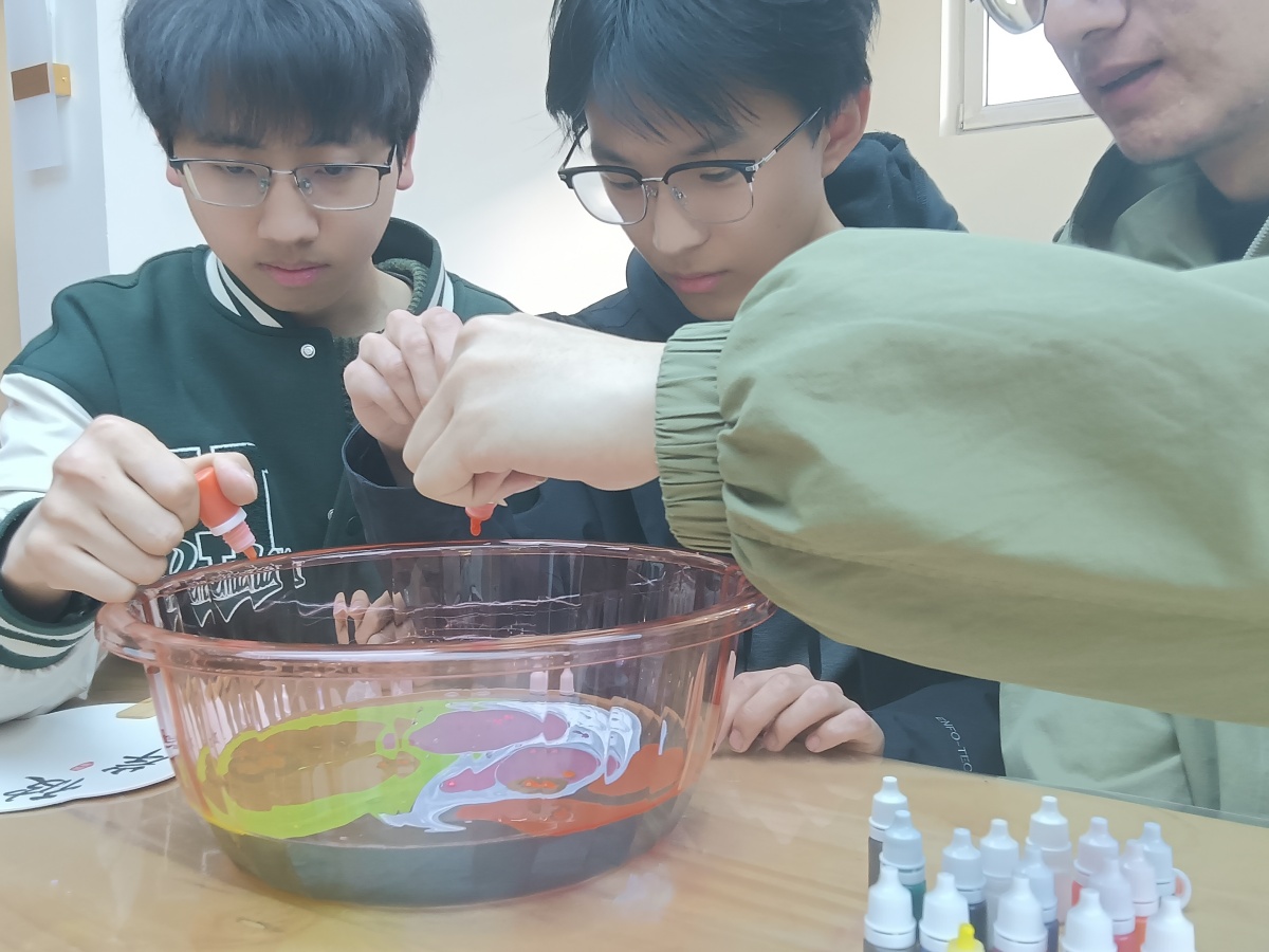 为丰富同学们的课余生活,提升艺术修养,机电2301班于3月21日17:00在三达书院意空间成功举办了一场水拓画完满团支部活动。活动伊始,由班级组织委员秦正阳详细介绍水拓画的起源与发展。从古老的丝绸之路到如今的艺术殿堂,水墨画独特的艺术魅力深深吸引了同学们的目光。实践环节,同学们纷纷投入创作。大家滴下颜料,看色彩在水面晕染、交融,仿佛打开了一个充满奇幻色彩的世界。发挥丰富想象力,创作出灵动的动物形象、抽象风格。经过近一个小时的创作,一幅幅精美的水拓画摆满了展示区,色彩斑斓,风格各异。此次水拓画活动不仅为同学们提供了一个展示艺术才华的平台,也让大家在紧张的学习之余放松了身心,增进了班级凝聚力。