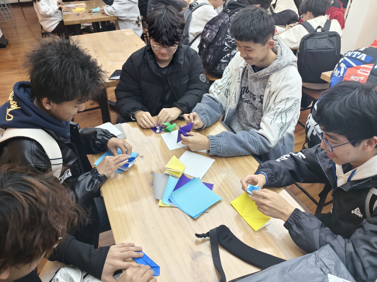 为丰富同学们的课余生活,增进班级同学之间的交流与互动,3月10日10:00,智能制造2402班在三达书院意空间举办了一场以“折纸奇遇记”为主题的完满团支部活动。活动伊始,同学们详细了解折纸艺术的悠久历史与丰富文化内涵,让大家对折纸这一传统技艺有了全新的认知。实操环节,从简单的对折,三角折法开始,一步步学习基础的折纸技巧,从简单的纸飞机、纸船,到较复杂的动物造型、花朵,视频中详细的步骤讲解和慢动作演示,让同学们能够轻松跟上节奏,逐步掌握技巧。大家边学边折,彼此之间热烈讨论、相互请教,现场气氛其乐融融。此次折纸活动,不仅为同学们搭建了一个展示创意与动手能力的舞台,更成为增强班级凝聚力的强力纽带,让同学们之间的友谊愈发深厚。