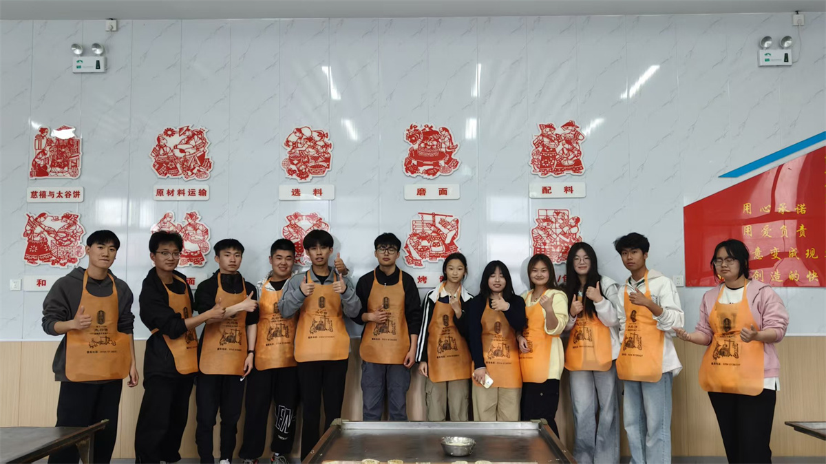 4月9日14:00,智能制造2401班学生赴国家级非物质文化遗产“太谷饼”传承基地——鑫炳记文化产业园开展社会实践活动。通过参观非遗展厅、体验传统制作工艺、探访现代化生产车间等环节,学生们近距离感受了百年老字号的匠心精神与创新活力,为非遗文化的传承注入青春力量。活动首站,学生们走进鑫炳记非遗展厅。展厅内陈列着泥塑面塑、砖雕鸽哨、烙彩葫芦等太谷传统手工艺品,学生们驻足于展品前,惊叹于非遗技艺的精妙。在无菌全封闭车间内,学生们目睹了太谷饼从原料到成品的全自动化生产流程。最后在师傅指导下,大家揉搓面团、塑形撒芝麻,尽管动作生疏,却热情高涨。同学们将面饼捏成星形,笑称“这是专属我的非遗印记”。活动结束后,学生们纷纷表示收获颇丰。同学们说:“太谷饼不仅是美食,更承载着晋商诚信精神和工匠智慧。作为青年一代,我们要用创新思维助力非遗‘活起来’。”此类实践将课堂延伸至社会,让学生在实践中增强文化自信,为传统文化注入新活力。