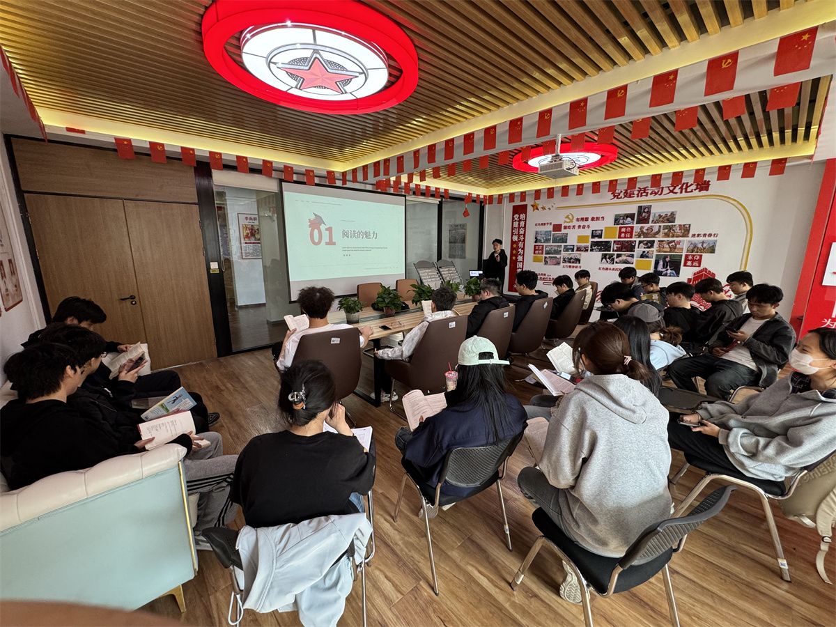 为了增强同学们的沟通交流,丰富课余生活,增进班级凝聚力与提高同学们的文化素养。4月9日15:00,机器人2301班在太行社区功能型党支部举办了一场关于阅读的完满团支部活动,主题为“最美人间四‘阅’天,春风漫卷书香来”。首先在好书推荐环节,同学们纷纷拿出自己心仪的书籍,分享自己的阅读感悟。通过分享,同学们不仅推荐优秀的书籍,还相互交流了阅读心得。诗词朗诵环节是活动的亮点之一。同学们在声情并茂地吟诵经典诗词,同学们纷纷畅谈自己的阅读体验。有人分享阅读经典文学的感悟;有人讲述阅读科普书籍带来的收获;还有人分享阅读小说带来的愉悦。这些分享让同学们更加深刻地认识到阅读的价值,同时也激发了他们对更多书籍的探索欲望。让在场的每一个人都感受到读书的魅力。读者们能分享感悟,碰撞思维火花,形成热爱阅读、崇尚知识的文化风气。通过这次活动,增进彼此了解,拉近同学关系,增强集体归属感。无论是文学、历史,还是科学、哲学,都能拓宽视野,提升文化底蕴,使班级整体气质更具内涵。