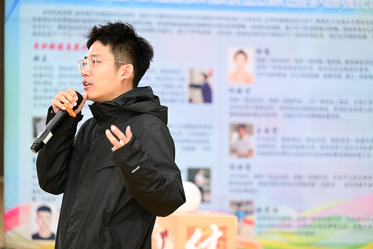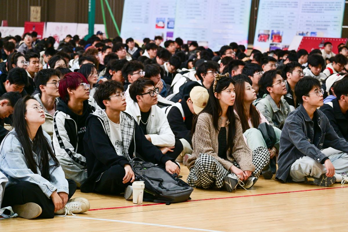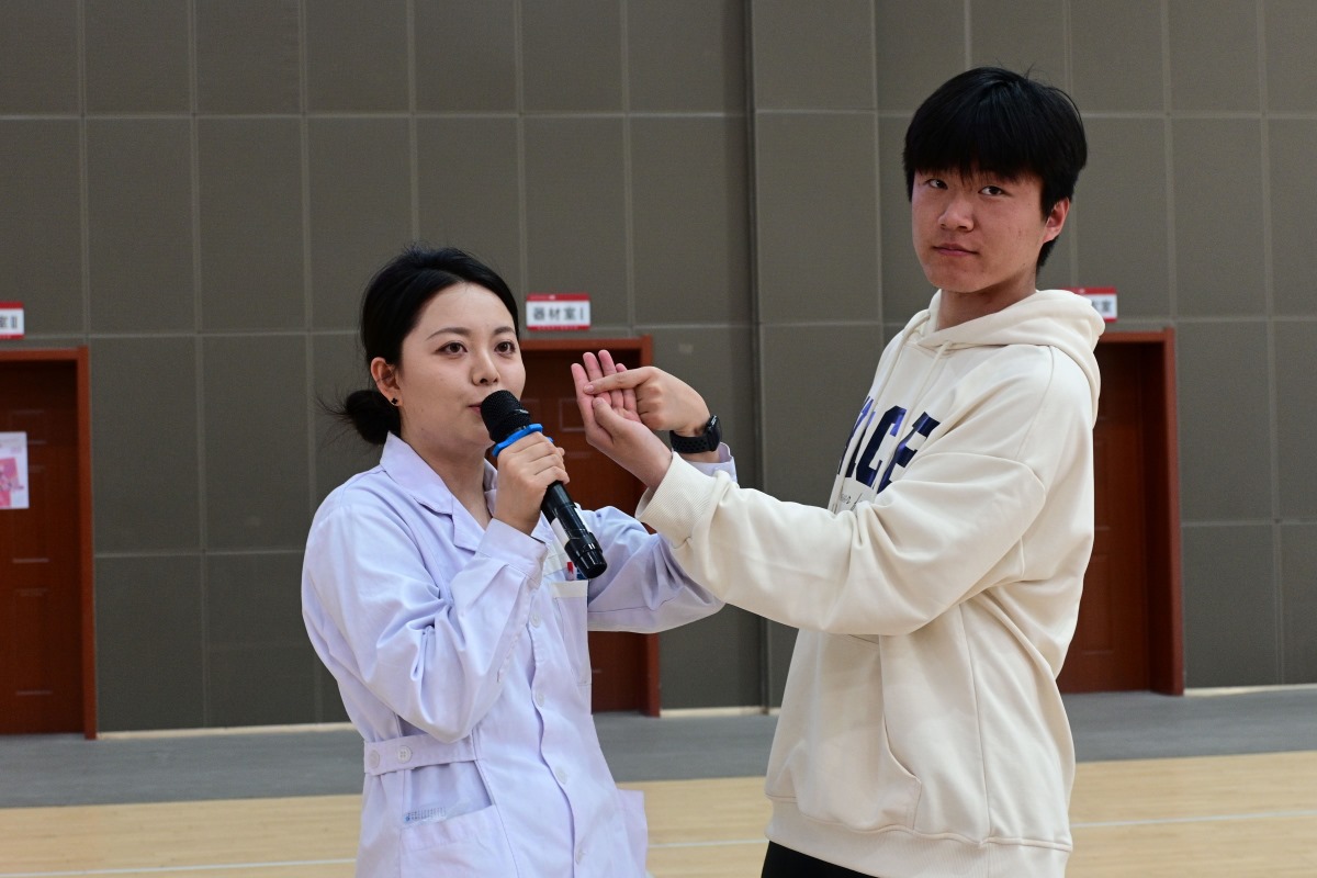 闫星宇老师以《黄帝内经》“法于阴阳,和于术数”为核心,系统解读中医养生智慧的现代价值:“熬夜耗伤肝血,冷饮损伤脾阳,看似微小的生活习惯,实则在打破身体的阴阳平衡。”他现场演示“敲叩胆经”“按摩颈椎腹部”等简易技法,配合人体经络模型动态演示,将晦涩医理转化为可操作的日常保健指南。“晨起敲胆经促进代谢,睡前摩腹改善消化,这些传统方法完全适配校园生活。”闫老师的讲解引发热烈反响。