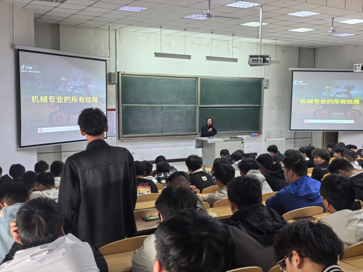 活动伊始,国画老师为同学们播放了一部介绍当代大学生使用AI现状的视频。短片中呈现出鲜明的对比:一部分同学借助AI提升工作效率,实现自我突破;另一部分同学却将AI当作获取答案的捷径,企图不劳而获。这种差异生动地展现了当下大学生在面对AI时的不同态度,也引出了“内卷”与“躺平”的现象。紧接着,另一个视频展示了机械专业同学们未来的行业走向和出路,引发了同学们的热烈讨论,大家纷纷对未来的职业发展表达了自己的看法和担忧。