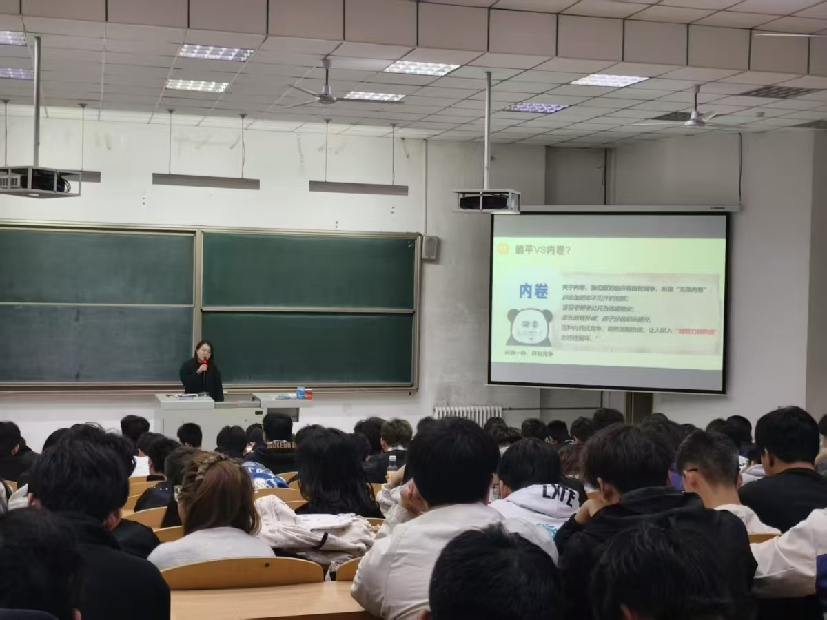 在AI浪潮翻涌、社会竞争白热化的当下,“躺平”与“内卷”成为当代青年热议的话题,也深深影响着我们的生活。4月18日12:30,一场主题为“躺平还是内卷,AI时代下当代青年的生存选择”的辅导员说完满活动在博学楼201展开。在AI技术迅猛发展的当下,此活动聚焦当代青年在职业发展与个人成长中面临的关键抉择,围绕AI时代下“躺平”与“内卷”的话题展开深入探讨,在思维的碰撞中探寻当代青年的生存选择。