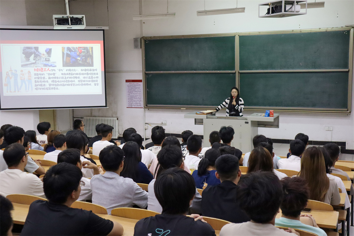任文姣老师首先向同学们讲述了身边平凡岗位上劳动者的动人故事。课堂上,老师们精心备课、耐心讲解,用知识的火炬照亮同学们前行的道路;办公室里,辅导员们时刻以朋友的身份关注学生成长,从学业指导到心理关怀,用温暖与责任守护每一颗青春的心。校园里,维修工人穿梭于宿舍楼与教学楼之间,及时修复故障,保障设施正常运转;环卫工人无论严寒酷暑,始终坚守校园各处,用辛勤的汗水换来学校的整洁美丽。这些平凡岗位上的劳动者,如同点点繁星,各自散发着独特光芒,汇聚成璀璨星河,温暖着我们的生活。