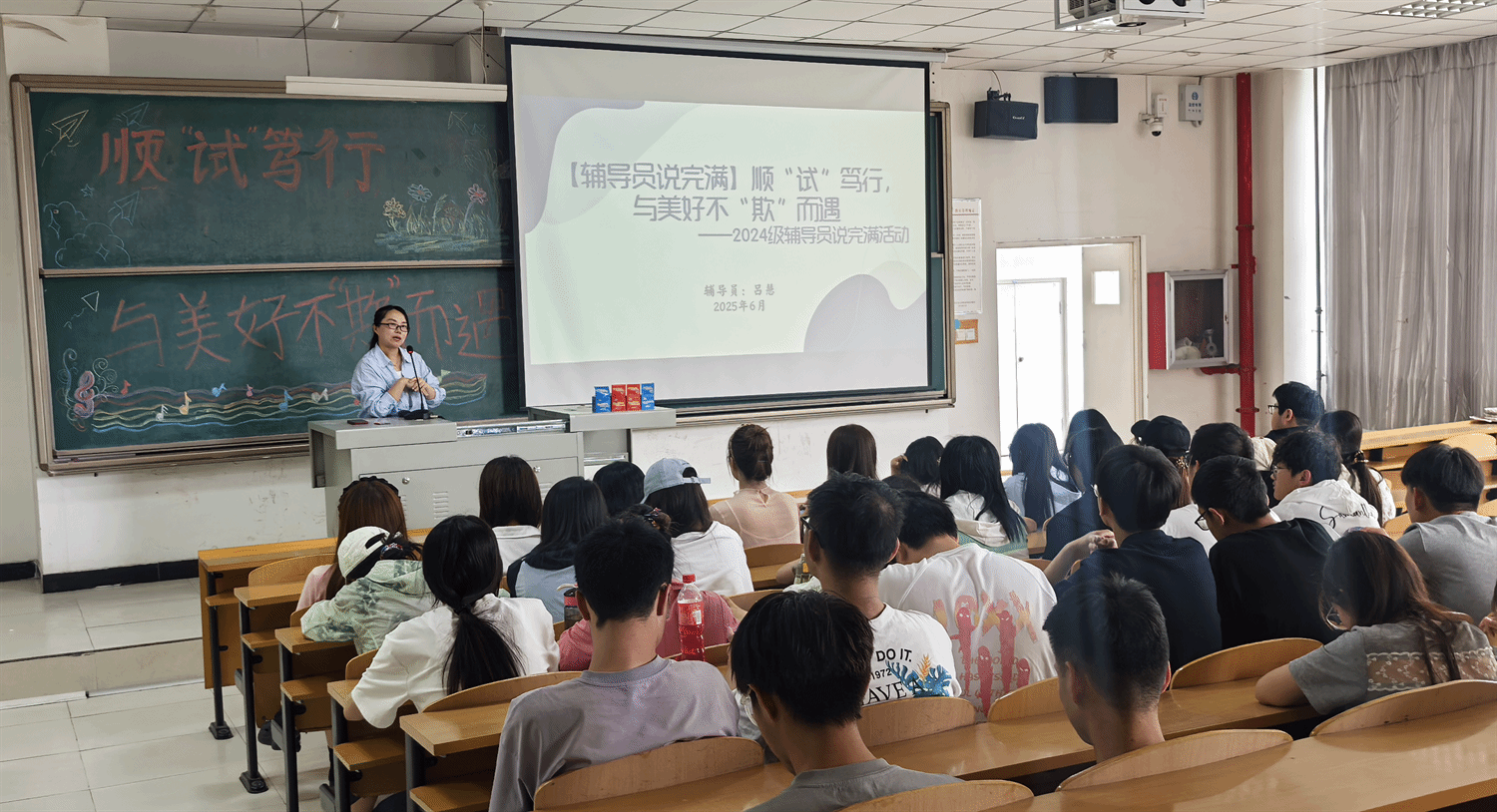以智为楫,以诚为舵。晋中信息学院智能工程学院2024级辅导员吕慧老师于6月6日15:00在2教204教室开展了以“顺‘试’笃行,与美好不‘欺’而遇”为主题的辅导员说完满活动。旨在通过系统性指导、情感性支持与价值观引领,为学子构筑备考“智慧塔”、搭建成长“心理桥”、筑牢青春“诚信堤”。以教育之名共绘青春奋斗的壮美画卷,在智慧传递、心灵滋养与品格锤炼中,见证一场关于成长与责任的深刻对话。