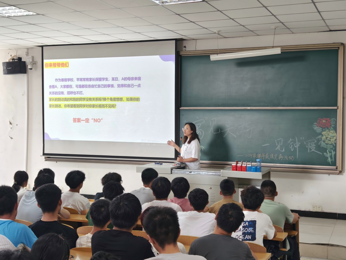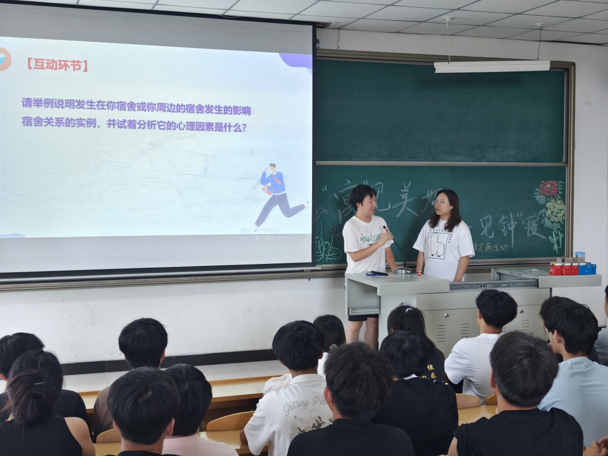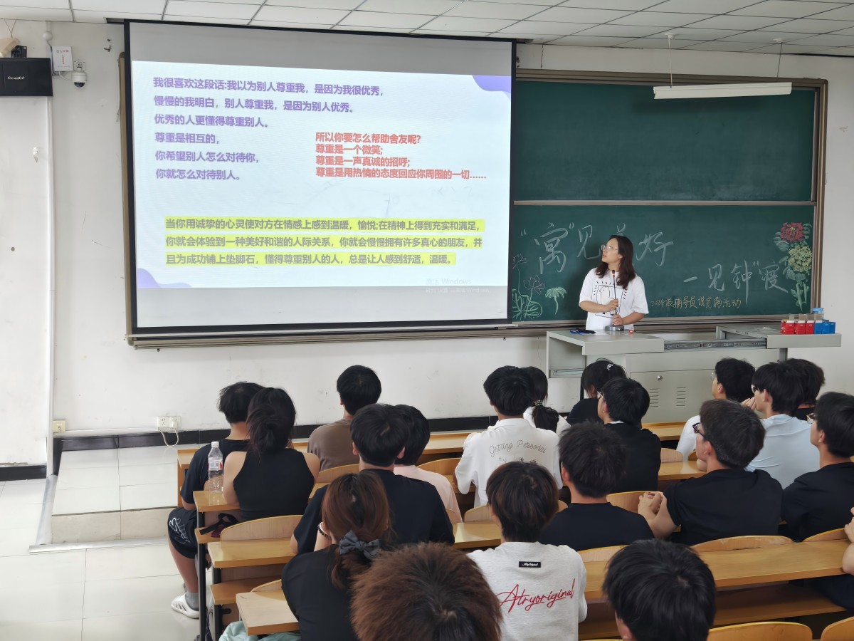 寝室是大学生活中重要的生活空间,宿舍人际关系直接影响着同学们的日常学习和生活。然而,由于成长环境、性格特点等差异,室友之间难免产生矛盾与误会。为帮助同学们构建和谐宿舍关系,6月11日12:30,晋中信息学院智能工程学院辅导员张敬美老师在2教401教室开展以“‘寓’见美好,一见钟‘寝’”为主题的辅导员说完满活动,希望同学们一起携手打造温馨宿舍,在同伴互助中共赴美好未来。