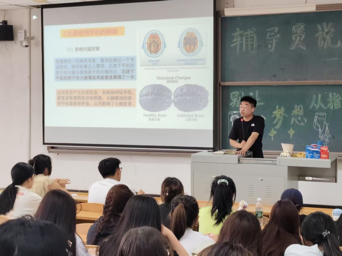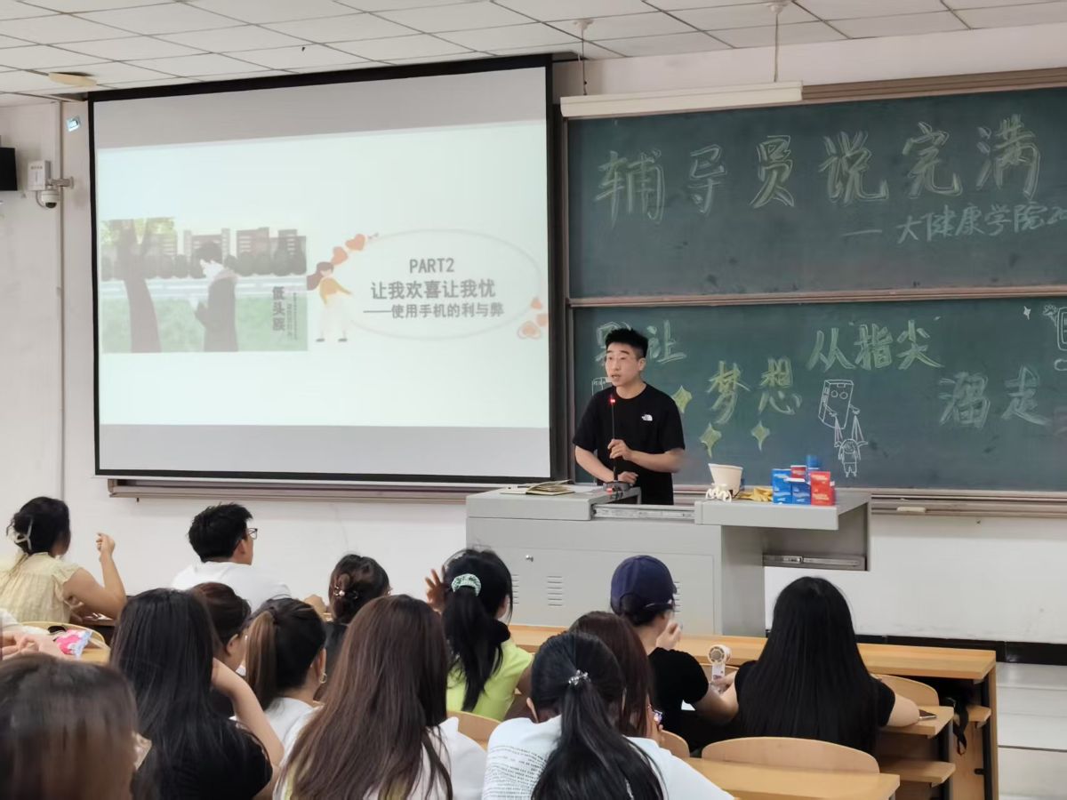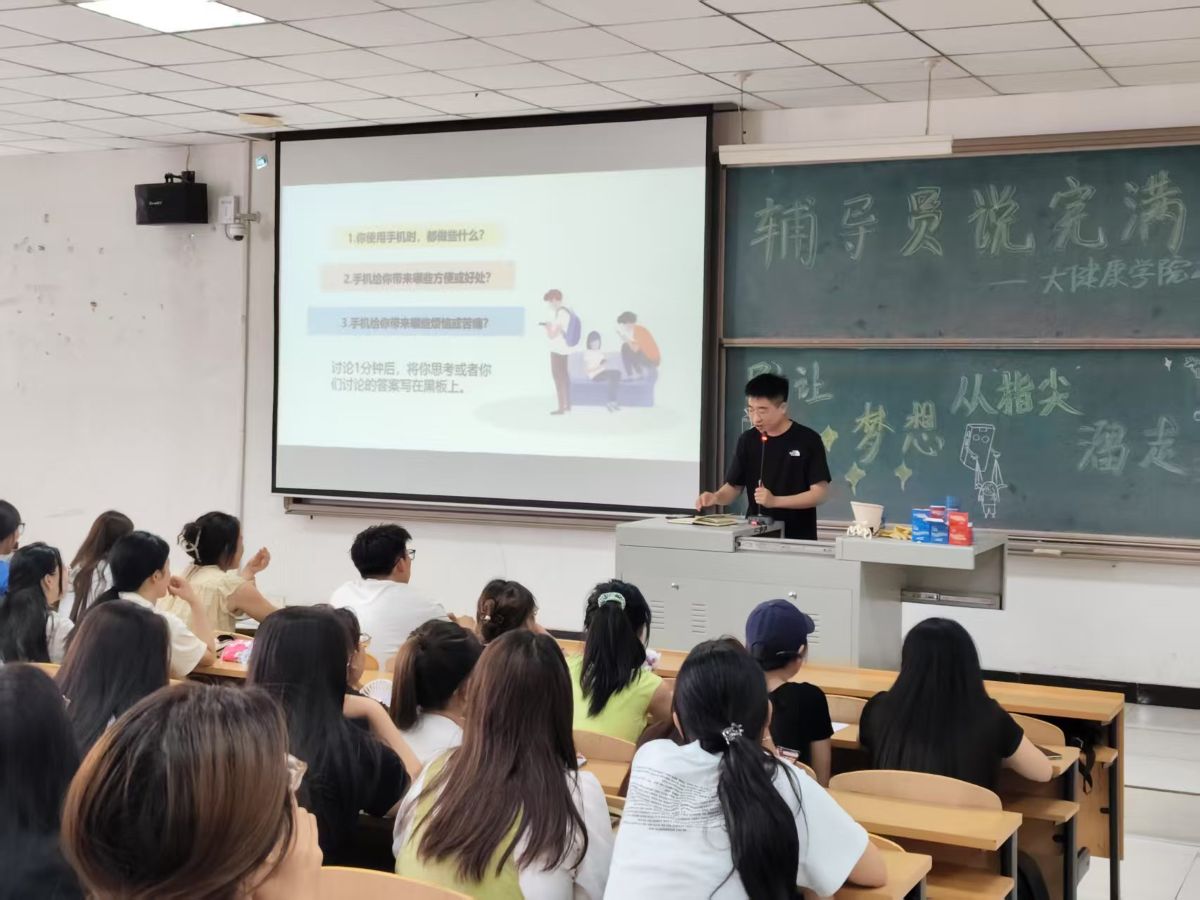 在智能科技渗透生活的当下,手机已成为青少年成长中不可忽视的“伙伴”。6月11日,晋中信息学院大健康学院2024级辅导员王子钰老师以“别让指尖划破梦想”为主题开展了一场兼具深度与温度的辅导员说完满活动。这场活动通过互动讨论、案例剖析与实践引导,为同学们打开重新审视手机使用的认知窗口,唤醒青少年对“垃圾快乐”的警惕。