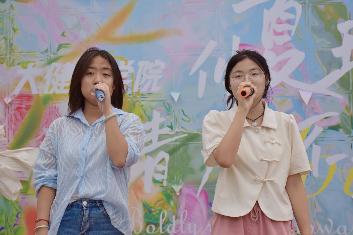 歌友会以“青春序章·声动校园”拉开帷幕。大四学姐一支活力四射的舞蹈《Shooting Star》率先点燃现场,灵动舞姿与鼓点节拍碰撞出少年意气。紧随其后,志愿服务队用《北京东路的日子》的清澈和声带全场穿梭回课堂晨读、图书馆伏案的日常,“开始的开始,我们都是孩子”的旋律引发全场大合唱,看台上荧光棒汇成星海。《思念是一种病》的王张恺同学用深情嗓音刚勾勒出离别愁绪,《小城夏天》的热辣舞蹈便瞬间将气氛拉满。