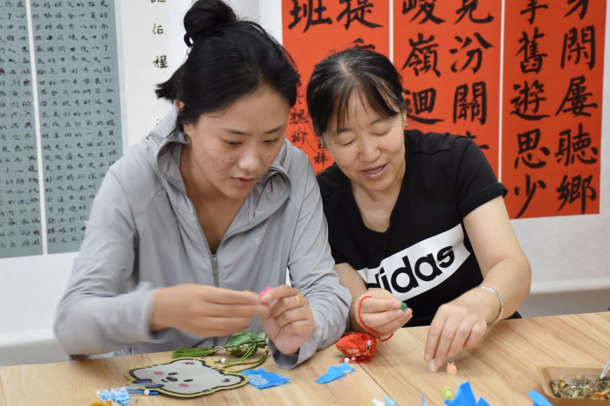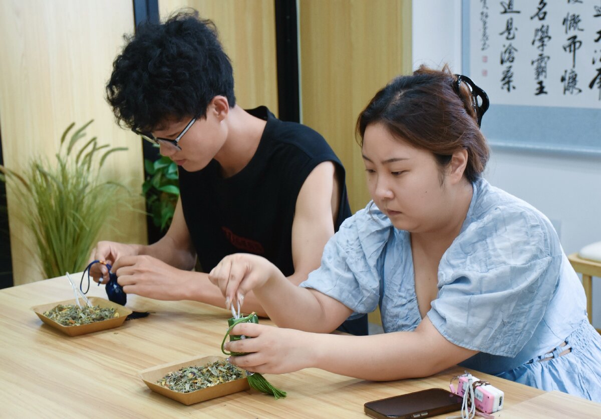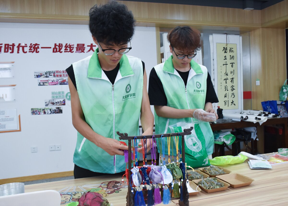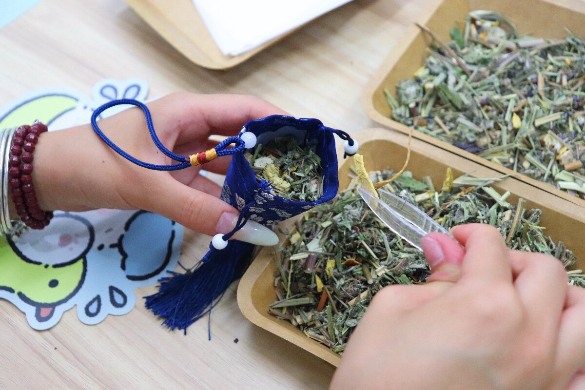队员们精心挑选艾草、薄荷、陈皮等天然养生香料,逐一为居民讲解每种香料的健康价值,艾草能有效驱寒除湿、阻隔蚊虫侵扰,薄荷可清热解暑、唤醒昏沉精神,陈皮有助消化、理气健脾。随后,大家围坐在一起制作香囊,居民们在队员的指导下搭配香料比例、仔细封装布袋,指尖的专注里,满是对这份健康礼物的珍视。