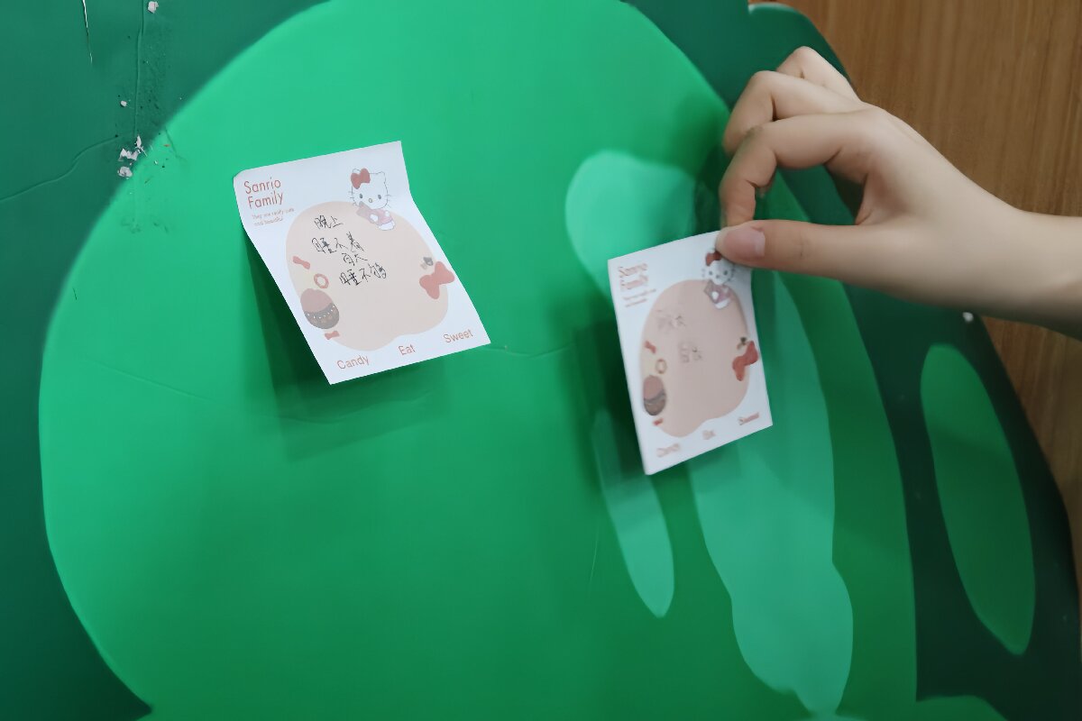 居民们将写好的便签贴在“健康树”上,片刻间,五颜六色的“叶片”缀满枝头,成为一道独特风景线。队员们还挑选有代表性的健康知识现场讲解,让这棵“健康树”既是疑问的汇集地,更是健康知识的科普站。