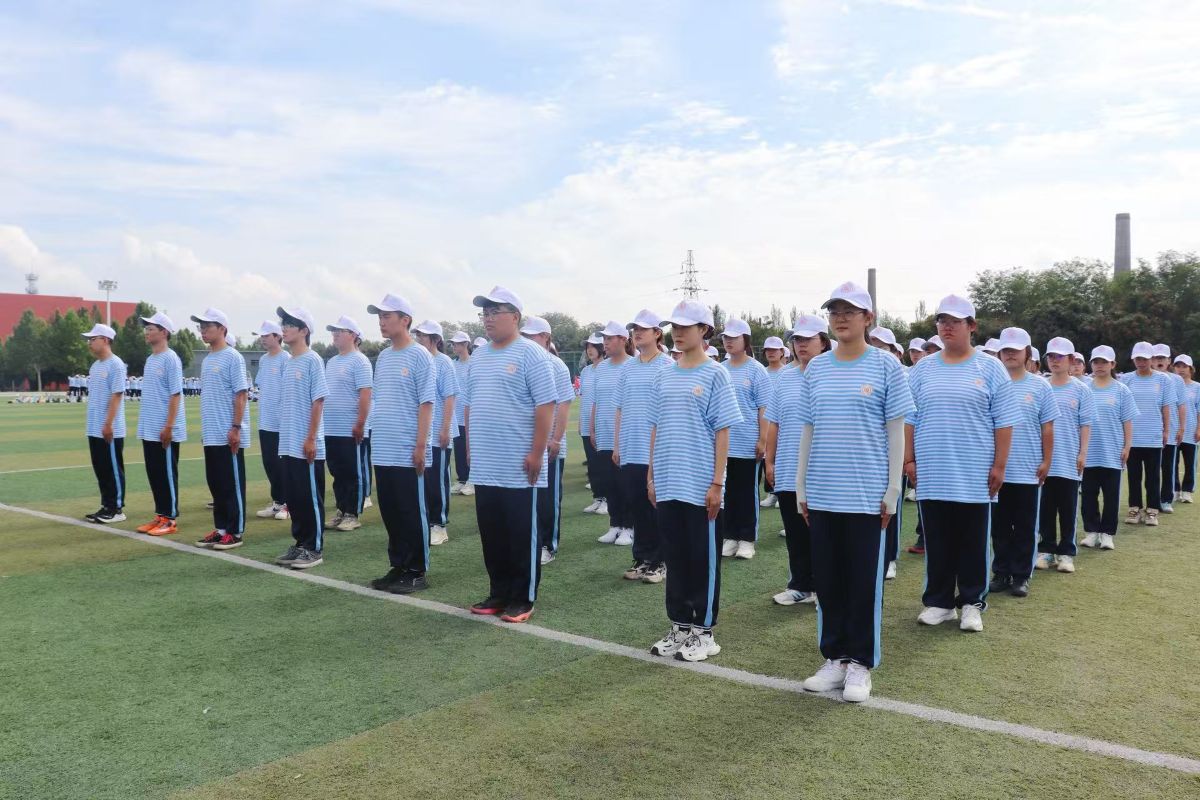 当尖锐的哨声刺穿音乐泡沫,整个操场仿佛被按下暂停键又急速敲击播放键。散坐在地上的小蓝人们像被施了统一咒语,齐刷刷腾空而起——分明是大地突然通电,还是这群人本就是蓄势待发的弹跳军团?原来青春的舞台无需刻意搭建,只要敢放声歌唱、肆意舞动,再普通的军训空地,也能成为闪闪发光的时刻。