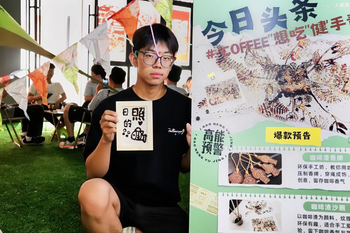 9月15日,大健康学院于上河书院露天庭院举办“咖啡渣环保创意实践活动”,通过艺术创作形式推动咖啡废弃物资源化利用。活动以“健康生活与环保艺术的融合”为主题,吸引百余名师生参与,以创新实践重新定义青年群体的环保行动范式。