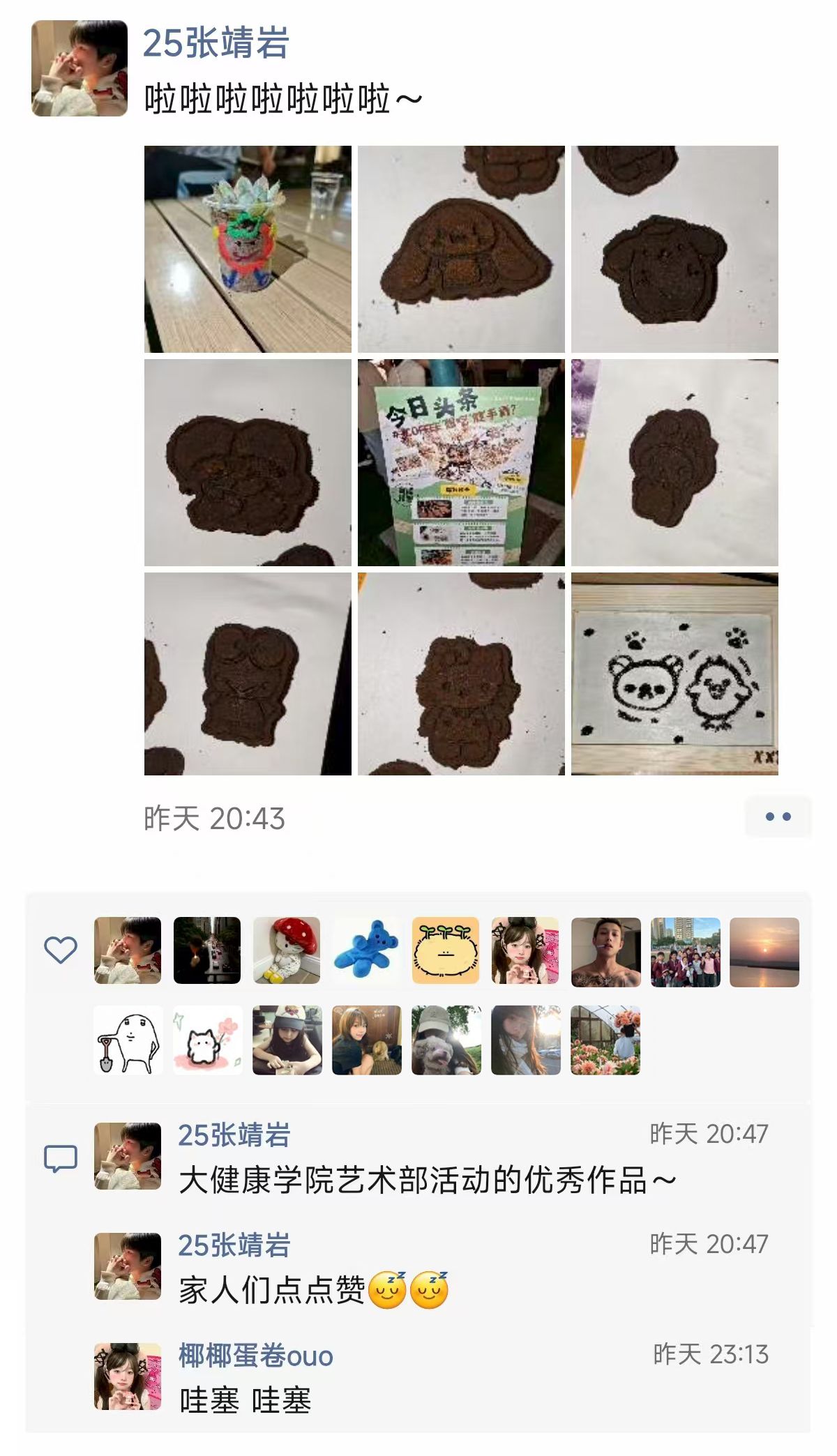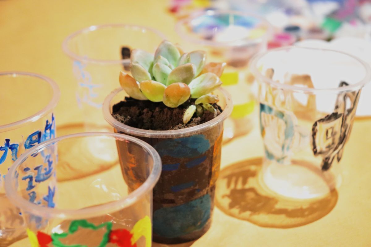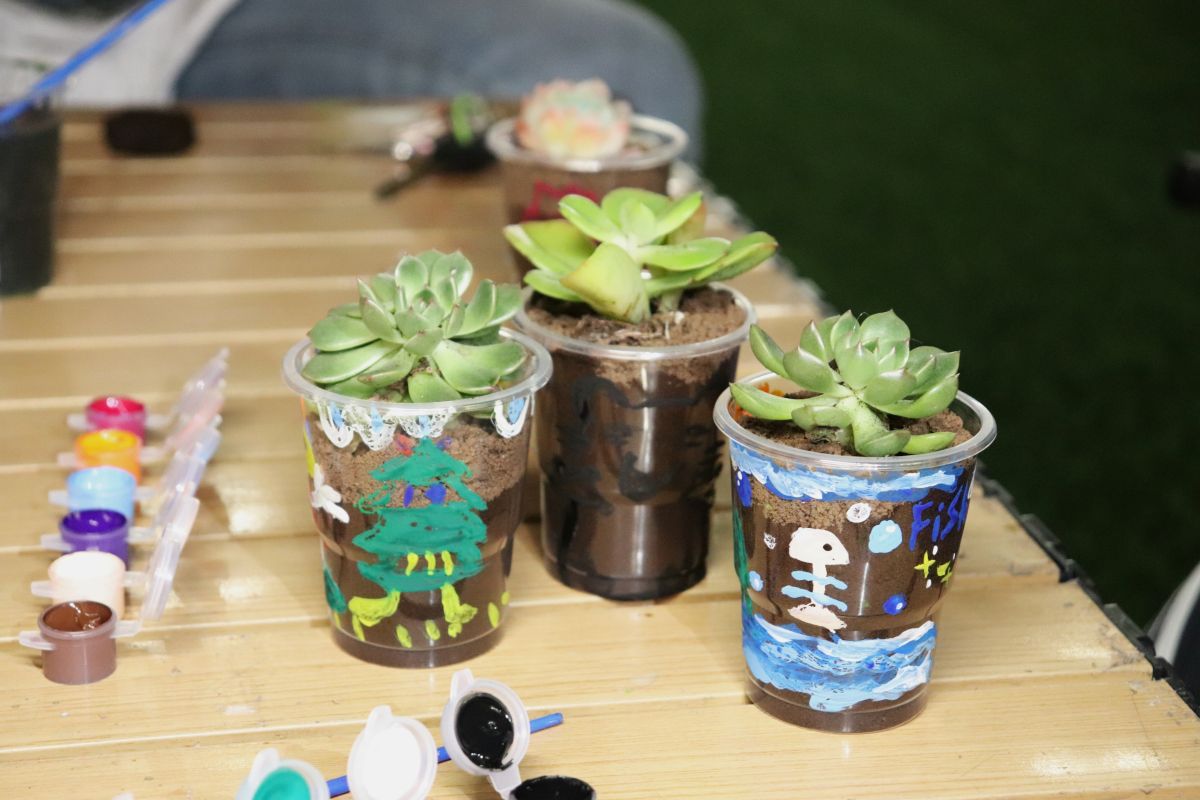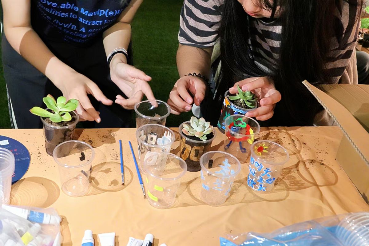 特别设置的“环保盲盒”即兴创作环节将活动推向高潮,某小组在一分钟限时创作中以咖啡渣拼贴“球”图案,直观呈现环保主题。专业教师结合多肉盆栽培育实例进行科学阐释:“咖啡渣作为栽培基质,两周内可自然降解为植物养分,这种闭环式环保实践正是可持续生活的微观体现。”
