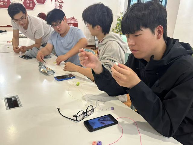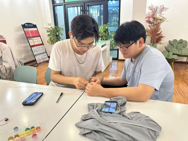 同学们在负责人的帮助下,认真地穿梭丝线,小手虽然略显笨拙,但每一个动作都充满了对非遗手工艺的好奇与喜爱。一位同学开心地说:“这样的活动特别有意义,不仅让同学们远离了电子产品,还能亲手接触非遗,感受传统文化的魅力,在动手过程中培养了耐心和专注力,真希望以后能多举办这样的活动。”