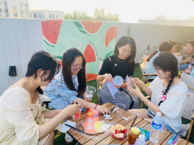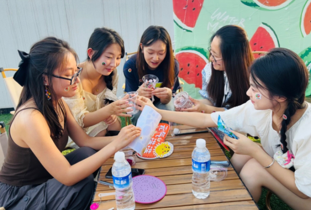 随着活动的进行,现场的气氛越来越热烈。积分集齐的同学们围坐在一起,开始进行本场活动的核心环节——DIY“西瓜杯”。大家利用准备好的水果块、果酱等材料,自制属于自己的专属“西瓜杯”。伴着温暖的夕阳,大家在这场甜蜜的西瓜派对中感受着夏日热情,在“做中玩”“吃中乐”中享受着美好的校园生活。