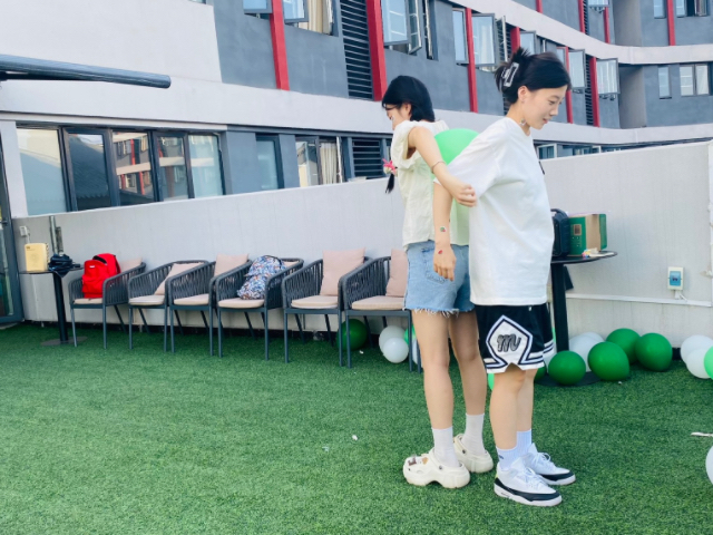 一场别开生面的西瓜主题活动就此上演。“瓜”分盲盒游戏中,大家全神贯注,试图将心仪的盲盒“收入囊中”;你喂我吃环节中同学们争分夺秒的盲吃西瓜,一不小心就会和西瓜贴贴;个个顶瓜瓜环节当中同学们争相开始大象转,在转圈结束后精准弹中瓶盖,为了获得西瓜扇子奖品努力保持平衡;运瓜大作战环节中大家配合默契,合力将“瓜”运往指定地点,不亦乐乎。