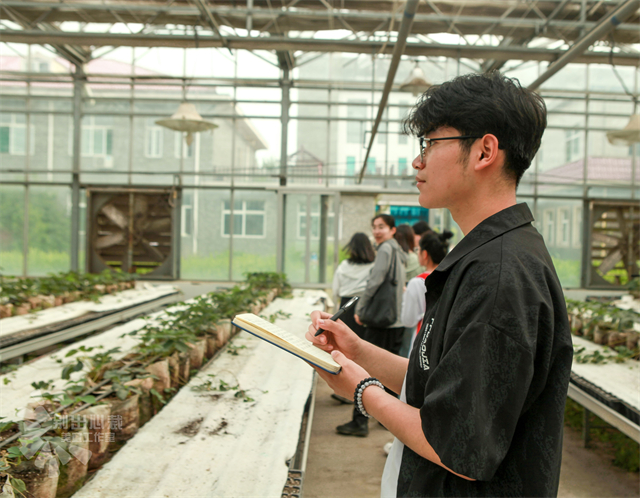 来自山西巨鑫现代农业示范园区实训部张家臻主任向学生干部们讲解产业园区玫瑰产业的发展前景,一部分玫瑰花进行鲜花零售,另一部分则充当了制作美食和化妆品的原料,完整的产业链使得玫瑰花有一花多用的功效。同时,张家臻主任普及了关于早黑宝葡萄、玉露香、红玛瑙樱桃等优质水果品种的特性和种植技术,随后在检测中心和组培中心还讲解到了草莓果苗的培育和生长。学生干部们通过丰富的理论知识学习,感受太谷农业在近20年间筑巢引凤,打造科技研发基地的过程,为乡村振兴和当地人民的脱贫打下坚实基础。