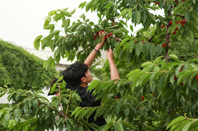 跟随着工作人员的脚步,学干部们来到了农业示范园区的采摘园,进行了红玛瑙樱桃和桃子的采摘行动。学生干部们通过两两组队,确定了采摘目标,一场关于默契和协作力的考验拉开序幕。经过二十分钟的“奋战”,学生干部们纷纷将自己的劳动成果展现出来。每一颗果实都承载着学生干部们辛勤的汗水,每一颗果实也蕴含着劳动人民的艰辛,这是大自然的馈赠更是劳动人民用双手创造出的财富。