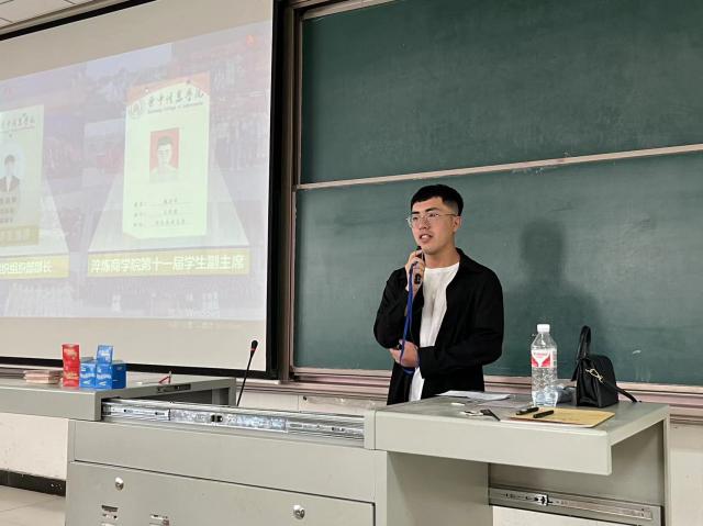 李老师还邀请了会计2104班魏会亭同学,总结他这三年在完满工作中的所思所想。魏会亭同学说,刚开始只是一个默默无闻的小干事,后来大二想锻炼自己,留在了校团委组织部成为了副部长,大三经过自主报名参加了淬炼·国际商学院主席团的答辩。后来历经重重考验,终于成为了主席团的一员,继续为完满工作而努力。透过位同学的故事,让其他同学看见了愿意为学生工作而付出,也愿意让自己的经历越来越丰富的一种韧劲。