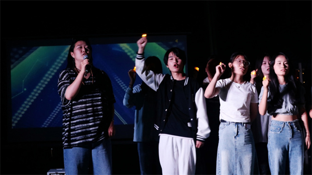 晚会进入尾声,《逆战》和《最美的太阳》的激昂旋律,寄托了“阿信”对毕业生在未来人生道路上勇往直前、无畏挑战的美好祝愿。