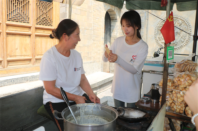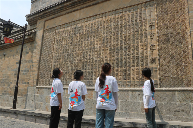 抵达烽火台后,实践团成员们首先向革命英雄纪念碑深深鞠躬,表达了对先烈的无限敬仰与哀思,深刻感受到革命先烈为了民族独立和人民幸福所付出的巨大牺牲。下长城的路上,成员们还抚摸了古老的壁画,在触摸那些古老壁画时,成员们仿佛能感受到历史的温度与文化的深度;此外,实践团成员们还学习了《朱子家训》中的智慧与道理,进一步丰富了自己的精神世界;体验当地特色小吃——压饼的独特风味,让这次旅行充满了文化的韵味与味蕾的享受。
