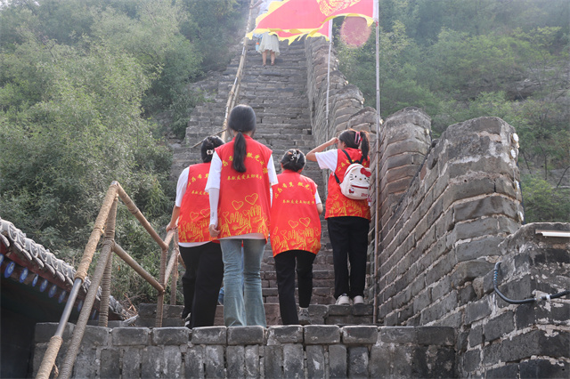 娘子关景区以独特的水乡村落文化、关隘长城文化、红色军旅文化、民俗传统文化名扬省内外,以其独特的魅力吸引着实践团成员们。站在娘子关关楼前,仰望那近乎垂直的楼梯,其间每一阶都似乎镌刻着历史的痕迹与英雄的足迹。在攀登的过程中,实践团成员们化身为当代的“花木兰”,以巾帼不让须眉的气概,一步步向上攀登。他们深知,这不仅是体力的考验,更是意志与精神的磨砺,正如那些红色娘子军,以柔弱的身躯,扛起了保家卫国的重任,展现了坚韧与不屈的巾帼之美。