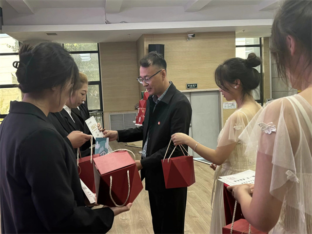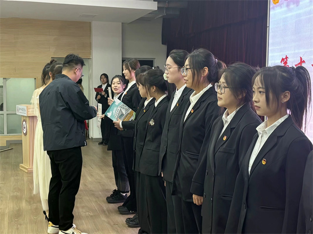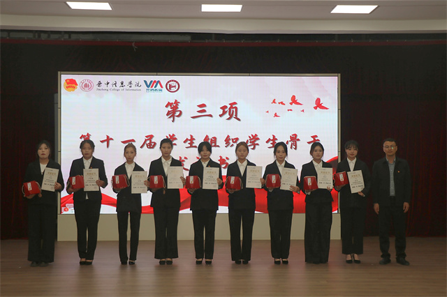 每一次启程,都蕴含着希望与憧憬,每一份努力,都凝聚着担当与拼搏,用激情点燃商英学子青春,以耕耘迈向商英未来。老师们为第十一届学生组织主席团成员颁发证书以及纪念品,一份证书闪耀着对商英干部辛勤耕耘的认可之光,一句嘱托包含着对他们未来继续发光发热的深切期许。
