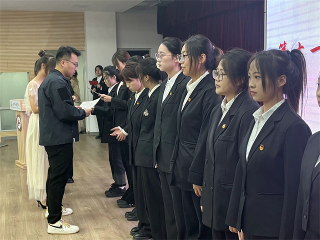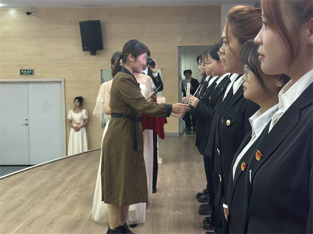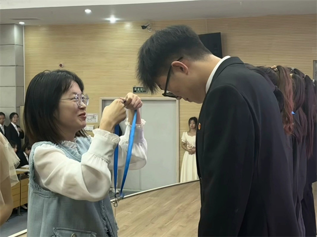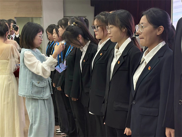 张瑞芸老师宣读第十二届学生组织干部任命决定,与会老师为新一届干部佩戴工作证,那一张张工作证不仅仅是职责的外化,更是使命与担当的传承。
