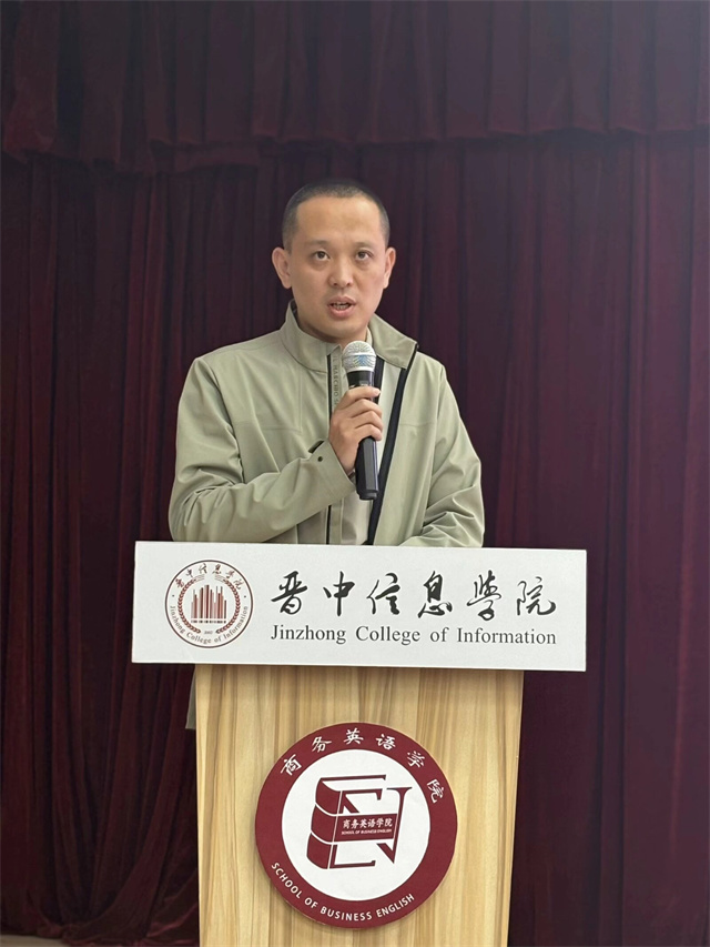 商务英语学院学工副院长梁瑶福对第十一届学生组织成员的勤勉奉献表达了诚挚的谢意,并对即将接过接力棒的新一届学生组织寄予了深厚的期望,勉励他们承担新青年之时代复兴的担当,共同点亮完满,照亮成长之路,一起奔赴充满光和热的地方。