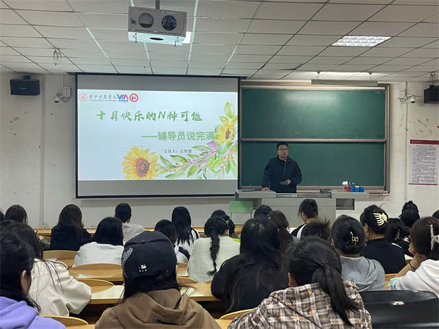 随着竞争压力的增大和生活节奏的加快,10月16日,商务英语学院王智慧老师在2教101举办“十月快乐的N种可能”的辅导员说完满活动,旨在关注大学生心理健康。