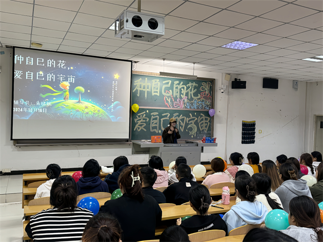 通过《小王子》视频,鼓励同学们勇敢追寻自我价值;情绪盲盒游戏让同学们分享经历、解答问题,彩色气球成为传递梦想的媒介,同学们写下梦想与愿景,互换气球并祝福。此次辅导员说完满帮助同学们树立正确三观,深刻体会爱自己的重要性,营造了轻松愉快的氛围,促进了自我成长和积极生活态度的培养。