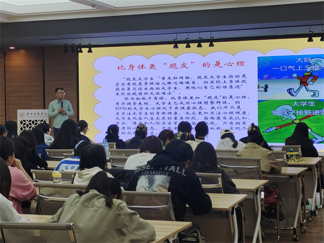 王老师指出学业、社交等常见困扰,鼓励同学们积极面对,接受无法改变的事实,他以爱迪生为例,强调坚韧不拔的重要性,传授情绪管理技巧、求助方法等,引导同学们重建信心,勇敢面对挑战。此次活动针对性和实用性强,为同学们提供全面深入的心理健康教育,为大学生活和未来发展奠定坚实心理基础,有助于培养正确心理素质。