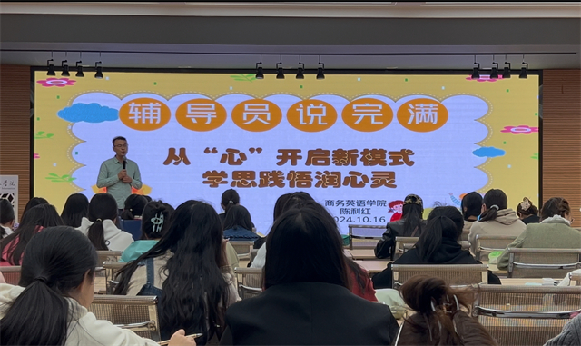 随着社会的快速发展,大学生面临多重压力,心理健康问题日益受到关注。为加强心理健康教育,10月16日,商务英语学院陈利红老师在多功能报告厅举办了“从‘心’开启新模式,学思践悟润心灵”为主题的辅导员说完满活动,旨在加强大学生心理健康教育。