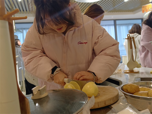 立冬时节,寒意渐浓,随着秋季的落幕,我们迎来了冬季的初见。立冬不仅是二十四节气之一,更是中华民族传统文化的重要组成部分。为了进一步弘扬中华优秀传统文化,提升大家的动手能力和团队协作能力,商务英语学院英语2301班于11月8日17:00,在毣谷望野·共享厨房举办了以“不止人生,舌尖也要Passion”为主题的完满团支部活动。在烹饪和分享的过程中,大家畅所欲言,其乐融融,共同描绘出温馨和谐的新篇章。