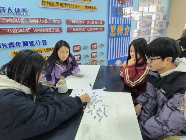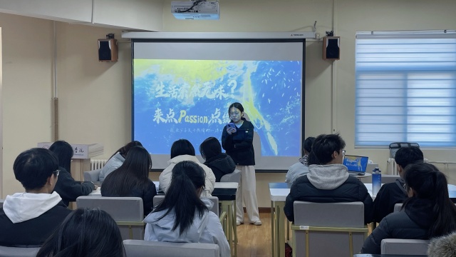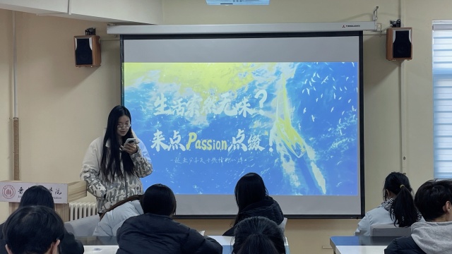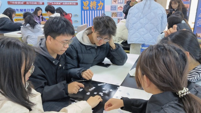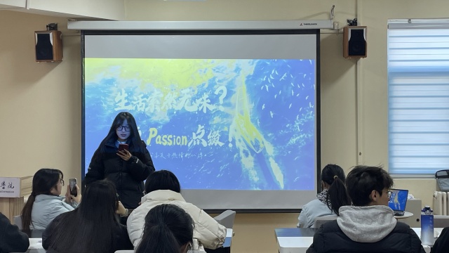 活动现场,为了激发同学们的参与热情,负责人对活动进行讲解,并组织同学们随机分成四组,从观看付航脱口秀视频到猜书名和拼贴诗活动再到大家分享自己对热情的感悟,每一项活动都旨在让同学们在轻松愉快的氛围中展现自我、提升能力。在第一环节猜书名活动中李兴同学和闫振楠同学以最短时间猜出正确书名;第二环节中每组各派一个代表上台进行你画我猜的活动,现场一片欢乐;第三环节中邰一雪、闫振楠、王桌慧和吴扬扬四位同学向我们分享感悟,无论外界如何评价,都要勇敢地做自己,爱自己本来的样子,我们都应该像他一样,保持对生活的热爱和真诚,勇敢地表达自己的想法和感受。并提到他的段子既幽默又能讽刺现实,以动物映射人的生活状态,巧妙地揭示了社会中的不平等现象,同时传达出积极的正能量,这种充满温情与力量的表达,很容易让观众产生强烈的情感共鸣。