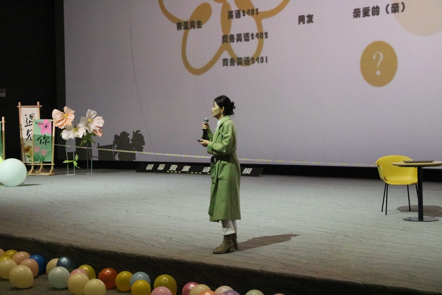 11月25日16:00,商务英语学院辅导员郭凯英于万画影城1号巨幕影厅开展“语言的通货膨胀,你找到适合自己的形容词了吗?”辅导员说完满活动。