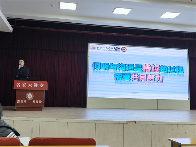 12月11日,商务英语学院辅导员王智慧老师于图书馆小礼堂开展以“听听你们的声音·辅导员×学生”为主题的辅导员说完满活动。在当今信息纷杂的时代,倾听显得尤为重要。学生群体面临着学业竞争、升学压力、信息过载及社交困惑等多重挑战,心理健康问题日益成为社会关注的焦点。王智慧老师希望通过此次活动来解决同学们的心理健康问题,通过耐心倾听更好地理解学生的内心需求和困扰,提供针对性的支持与指导,帮助他们建立自信,有效应对压力,促进健康成长与发展。同时采取了多种措施为同学们服务。例如:定期开放辅导员办公室时间,建立线上沟通渠道,以及定期举办主题性的小组讨论会和心理健康工作坊等。希望能够增强同学们的归属感和自我认同感,还传授了有效应对压力的方法,促进了同学们心理健康的全面发展。