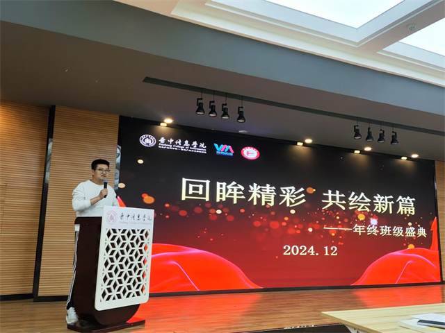 年终之际,2023级学生举办了一场别开生面的辅导员说完满活动,为过去一年的班级工作画上了的句号,同时也为未来播下了希望的种子。12月5日商务英语学院辅导员杜素鹏老师于多功能报告厅开展了以“纵有考试分秋色,需以诚信见英雄”为主题的年级会。第一个环节是杜老师所带的五个班的班级代表上台进行各班级一年来的班级建设成就。