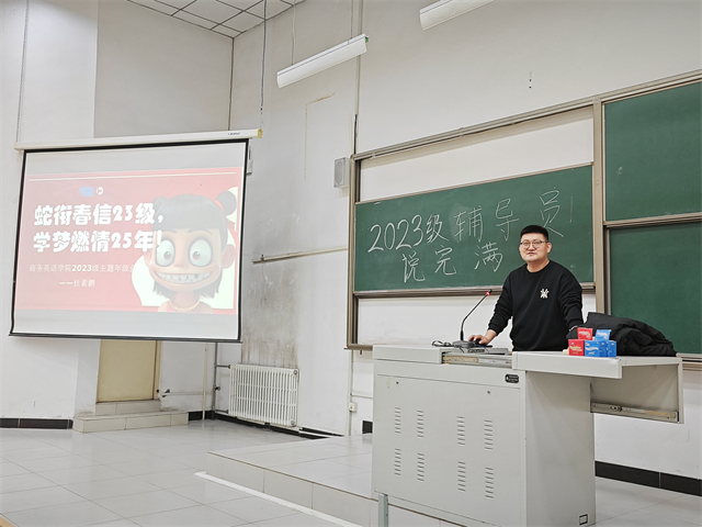 随着春季学期的正式开始,商务英语学院杜素鹏老师于3月5日开展了辅导员说完满活动。